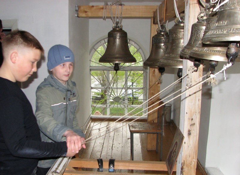 Колокольный звон над ЗдвинскомНаш храм очень посещаем. И приходят в это святое место “и стар и млад”. Кто свечку поставить, кто с батюшкой пообщаться, кто иные свои духовные потребности удовлетворить. А сегодня у нас в гостях школьники из села Старогорносталево Здвинского района. И первым делом попросились они подняться на нашу колокольню. Восторг был нескрываем у юных друзей, но ещё более дети обрадовались случаю самим позвонить в колокола. Наш звонарь, двенадцатилетний Николай, сын батюшки Романа, с удовольствием продемонстрировал своё искусство колокольного звона. И каждому желающему преподал первый урок этого ремесла. Сельские ребята быстро нашли общий язык с нашим юным звонарём, так как они по возрасту являются ровесниками. Казалось, что колокольный звон разливался над всем нашим Здвинском.