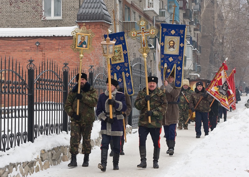 Войсковой праздник Сибирского казачьего войска19 декабря, в день памяти Святителя Николая Чудотворца, Сибирское казачье войско отметит очередной день своего «старшинства» – 427-летнюю годовщину основания. Когда разрушились идеологические запреты и прекратилось искусственно навязанное коммунистической властью шельмование казачества, повсеместно, где только уцелели потомки казачьих родов, началось создание казачьих общин и организаций. В Новосибирске у истоков возрождения стояли старики-фронтовики Иван Гаврилович Антоненко, Кузьма Петрович Зайцев, Владимир Александрович Шмаков, Виталий Григорьевич Шкуро, Василий Сергеевич Деревсков, Анатолий Алексеевич Михеев. Так через много лет снова проявилась способность казаков к самоорганизации и самовосстановлению, в прошлом весьма пугавшая большевистских руководителей. Уже 15 сентября 1990 года на Учредительном Круге Новосибирского отделения землячества имени атамана Ермака Тимофеевича казаки приняли Устав своей организации. Все смелее и увереннее раздавались голоса казаков, ратующих за общую войсковую организацию в границах всей Западной Сибири. Одновременно от государства Российского также исходили законодательные инициативы. В августе 1995 года был издан Указ Президента РФ о государственном реестре казачьих обществ в Российской Федерации, который послужил толчком к тому, чтобы 29 июня 1996 года состоялся Большой Учредительный Круг казаков Сибирского казачьего войска, атаманом которого был избран казачий полковник Виктор Калетин. С этого момента Сибирское войско вошло в подчинение Главного Управления казачьих войск при Президенте России, которое вскоре было реорганизовано в Управление Президента РФ по делам казачества во главе с генералом армии, героем России Петром Дейнекиным, потомком донских казаков. Примерно в это же время в Новосибирске предпринимались попытки организации отдела Сибирского казачьего войска. Отдавая дань традиции почитания старины, казаки называли его Ново-Николаевским, опираясь в данном случае только на старое название нашего города, потому, как ранее отдела с таким названием никогда не существовало. Некоторые казаки предлагали не вступать вообще, пока не наступит полная ясность того, зачем вводится реестр казачьих обществ. Время шло, жизнь продолжалась. Происходили многие рядовые и важные события, как в жизни войска, так и в жизни местного казачьего общества, неформально объединенного в Ново-Николаевский отдел. Из наиболее ярких и значительных дел нужно вспомнить агитационный поход Сибирских казаков 1998 года по маршруту похода дружины воеводы Андрея Матвеевича Воейкова, разгромившего 400 лет назад, в 1598 году, «сибирского султана» - хана Кучума, последнего «чингизита», последнего представителя некогда грозной Золотой Орды. Эта дата не могла остаться незамеченной в нашей области. В те далекие годы на берегу Оби, близ устья реки Ирмень, казаки одержали окончательную победу над войском хана Кучума. И это было первое проникновение русских на территорию Верхнего Приобья. В наше время на всех туристических картах Новосибирской области отмечено место исторического сражения и окончательного разгрома сибирского хана. Жаль только, что там нет до сих пор достойного памятника нашим славным предкам... Казаки с охотой и энтузиазмом откликнулись н