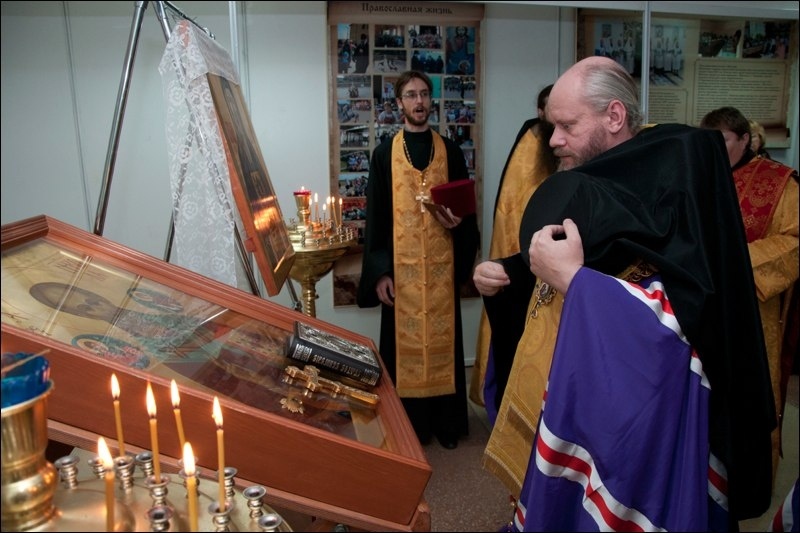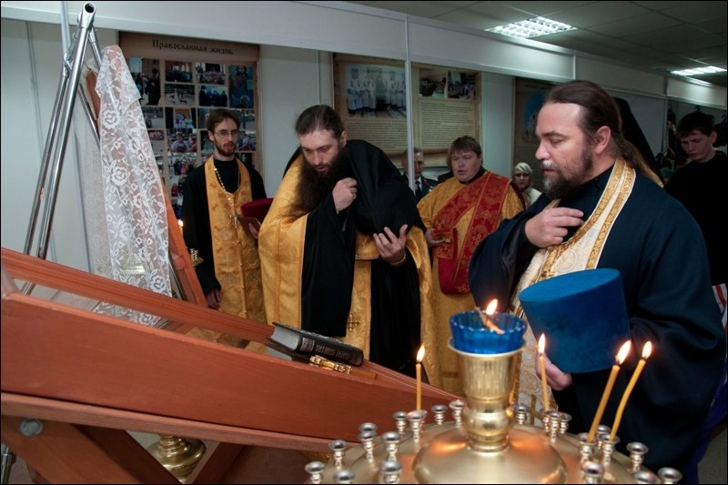 Открылась выставка "Искитим православный"18 октября в ДК Молодость состоялось торжественное открытие выставки "Искитим Православный". В этом году экспозиция продлиться до 24 октября. 18 октября в ДК Молодость состоялось торжественное открытие выставки "Искитим Православный". Работа экспозиции началась молебном перед особо чтимой иконой святителя Николая Чудотворца, которая была доставлена из искитимского кафедрального собора. Молебствие возглавил Преосвещенный Лука, епископ Искитимский и Черепановский. Владыка поздравил присутствующих с началом работы выставки и сказал о том, какое значение имеет это знаковое событие для духовной и культурной жизни Искитима: "Православная выставка важна тем, что проповедует традиционные христианские ценности, духовный образ жизни. Те люди, которые по каким-то причинам ещё редко переступают порог храма, смогут здесь соприкоснуться с миром Православия. Но она полезна и для тех, кто уже является воцерковленным христианом. Программа выставки очень насыщена: кроме того, что каждый посетитель сможет помолиться перед чтимыми иконами, заказать молебны, приобрести книги и утварь, здесь будут проводиться семинары, показываться православные фильмы. Особо обращаю ваше внимание на два фильма протоиерея Александра Новопашина, которые будут демонстрироваться 21 числа: "Царь Болгарский" и "Меня это не касается". Первый рассказывает о ныне здравствующем православном монархе, а второй — о проблемах наркомании, о том как избавиться от этого страшного недуга. Приглашаем вас на презентации этих фильмов. Во время работы выставки каждый из посетителей будет иметь возможность поговорить со священником и получить ответы на свои вопросы. Ещё раз поздравляю всех с радостным событием и призываю Божье благословение на православную выставку". Далее в программе состоялся праздничный концерт и прошел семинар профессора РГПУ М.Я. Дворецкой.