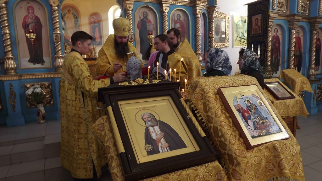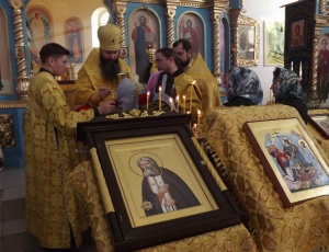 Икона преподобного Серафима Саровского с частицей мощей будет пребывать в БарабинскеЕсли кто имеет веру ко мне, убогому Серафиму, то у меня за сего человека горит свеча пред святой иконою. И если свечка падала, это было для меня знамением, что человек этот впал в смертельный грех. Тогда я преклоняю свои колена за него перед благоутробием Божиим. Милостью Божией в Каинской и Барабинской епархии появилась еще одна святыня – икона преподобного Серафима Саровского всея России Чудотворца с частицей его святых мощей. 19 октября 2013 года перед Всенощным бдением в Кафедральном соборе в честь иконы Пресвятой Богородицы «Всех скорбящих радость» города Барабинска состоялась торжественная встреча большой святыни. Святые мощи батюшки Серафима на писаной иконе в киоте будут постоянно пребывать в храме города Барабинска. «Господь судил нам жить в годы, которые определяют судьбу нашей страны, её будущее. В это неспокойное время многим из нас не хватает мирного, созидающего, духа — духа Кротости и Любви. Как современно звучат сегодня слова пламенного старца Серафима: «Радость моя, молю тебя, стяжи дух мирен и тогда тысяча душ спасется около тебя». Господь, по молитвам преподобного Серафима, да ниспошлет в наши сердца этот мирный дух и поможет преодолеть все нестроения. Радость о Воскресшем Господе, Спасителе нашем, носителем которой был преподобный Серафим Саровский, да живет всегда в сердцах ваших!» (Алексий, Патриарх Московский и всея Руси 23 июля 1991 года).