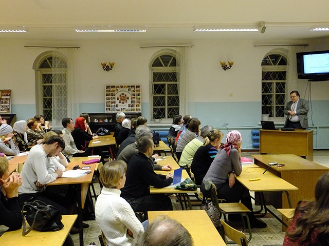 Медицинские вопросы касаются всех (+ видео)1 ноября 2013 г в воскресной школе при Вознесенском кафедральном Соборе состоялась встреча студентов Новосибирской духовной семинарии, новосибирских православных врачей, студентов Богословского института и духовенства Новосибирской епархии с представителем Исполкома Общества православных врачей России (ОПВР) имени святителя Луки (Войно-Ясенецкого). Открыли встречу ректор Свято-Макарьевского богословского института протоиерей Александр Реморов и председатель Новосибирского регионального отделения ОПВР Д.Индинок. С докладом выступил секретарь Исполкома ОПВР , доцент кафедры детских болезней Первого Московского государственного медицинского университета , кандидат медицинских наук, врач-педиатр Иван Анатольевич Дронов. В первой части доклада выступающий познакомил аудиторию с историей возникновения и развития Общества православных врачей России, осветил цели, задачи и основные направления его деятельности. Вторая часть доклада была посвящена проблемам, связанным с вакцинопрофилактикой. Иван Анатольевич наглядно продемонстрировал статистические данные, которые развенчивают мифы о вреде профилактических прививок. Кроме того, были приведены высказывания правящих иерархов о важности проведения вакцинации и факты из истории, ярко подтверждающие положительное отношение Русской Православной Церкви к профилактическим прививкам. Очень интересной оказалась история вакцинопрофилактики, слушатели впервые узнали, что первые прививки в России были сделаны священнослужителями. После доклада слушатели задали члену Исполкома ОПВР вопросы, на которые получили квалифицированные ответы. Некоторые слушатели высказали свою точку зрения на услышанное. Аудитория пришла к общему мнению, что вакцинация как метод необходима и полезна, а выступления против нее не являются общим мнением православных врачей и духовенства. Однако, было отмечено, что проблемой для населения нашей страны является, прежде всего, неуверенность в качестве вакцинных препаратов и проведения вакцинации, а не опасность осложнения от прививок. Слушателям была представлена изданная ОПВР брошюра «Вакцино-профилактика у детей (брошюра для родителей)», одним из авторов которой является Дронов И.А., и которая рекомендована к публикации Издательским Советом Русской Православной Церкви. Со вступительным словом в брошюре к читателям обращается Епископ Орехово-Зуевский Пантелеимон, председатель Общества Православных врачей. В заключение протоиерей Александр Реморов поблагодарил докладчика и подчеркнул важность таких встреч для повседневной пастырской практики.