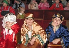 Рождественский концерт в Бердске собрал не менее 1000 зрителейДаже сильный мороз не помешал бердчанам 7 января прийти на традиционный рождественский концерт в ДК «Родина». ![]() Выступление юных артистов никого не оставило равнодушным По традиции воспитанники православной гимназии получили рождественские подарки от предпринимателей — членов попечительского совета В холле Дворца культуры было, как говорится, не протолкнуться. В очереди в гардероб бердчанка Елена Цветкова рассказала, что второй год подряд в Рождество приходит на «чудное представление, поднимающее настроение». - Просто душа радуется, когда смотришь на выступление деток, – умиляется пенсионерка. Зрители не торопятся проходить в зал, с интересом разглядывая выставку творческих работ воспитанников православной гимназии. ![]() В холле ДК «Родина» расположилась выставка творческих работ учеников православной гимназии Елена Веселкова работает в православной гимназии – учит ребятишек искусству макраме. Вот и выставку на праздник вместе с детьми приготовила. На концерт пришла впервые, «раньше даже и не думала, что здесь проходят такие чудные вечера», пока не стала преподавателем в гимназии и не узнала, какие талантливые ребятишки там учатся. В зале аншлаг, и припозднившимся бердчанам приходится занимать места в проходе. Праздник открывает настоятель Преображенского храма протоиерей Василий Бирюков, и зрители внимают его словам: праздник Рождества Христова в наших сердцах, наших домах уже долгие годы и приносит только светлые чувства. И смысл всей нашей жизни – это служение людям. Предприниматели Бердска со сцены поздравили всех присутствующих в зале и вручили православной гимназии рождественские подарки. Иван Минин – аппаратуру, «чтобы дети еще лучше выступали на всех мероприятиях, которые будут в будущем, и которой даже нет в ДК «Родина». Владимир Болтрукевич – сертификат на 100 тыс. рублей. После завершения торжественной части зрители получили истинное наслаждение от песен, танцев и костюмированного рождественского представления. ![]() Три волхва заранее приготовили дары ![]() Меценаты города Иван Минин и Владимир Болтрукевич поздравили бердчан с праздником
