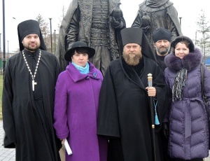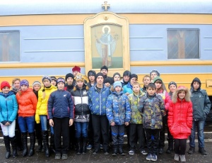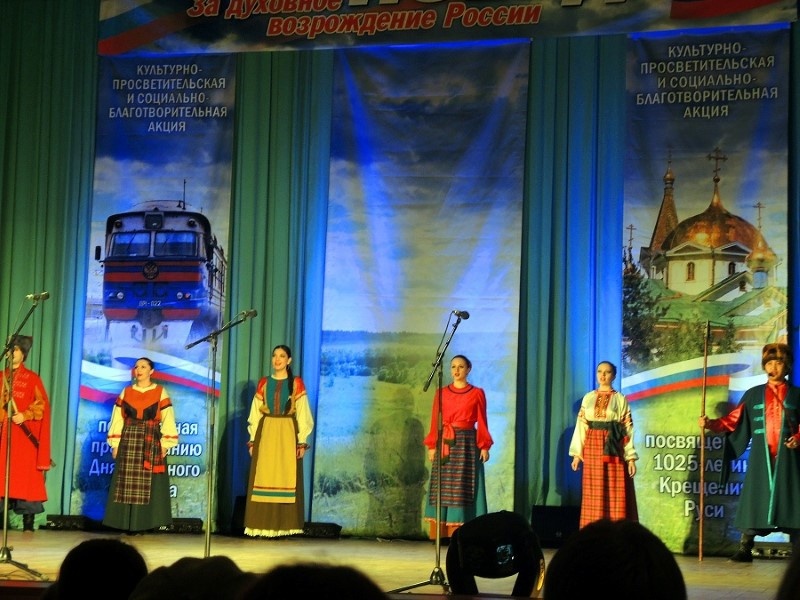 Поезд «За духовное возрождение России» в Купино19 ноября/вторник. В 10.00 в храме св. апостола Луки г. Купино состоялась встреча правящего архиерея Карасукской епархии епископа Филиппа. Владыку встречали благочинный Центрального округа иеромонах Мелхиседек (Свистелин), секретарь Карасукской епархии иерей Игорь Непша и представители поезда «За духовное возрождение России». В Доме культуры г. Купино состоялась конференция, посвящённая духовно-нравственному воспитанию молодёжи. После обеда епископ Филипп, представители администрации Купинского района, протоиерей Константин Работа и участники миссионерского поезда посетили новый памятник св. благоверным Петру и Февронии, Муромским чудотворцам. Затем Его Преосвященство епископ Филипп встретился в музее со школьниками г. Купино и рассказал им о цели и значении миссионерского Поезда Памяти. Утром этого же дня участники поезда (более 20-ти священнослужителей, врачи и музыкальные коллективы) работали в отдалённых селах Купинского района. Священники крестили детей, врачи принимали пациентов, а творческие коллективы показывали концерты, посвящённые 1025-летию Крещения Руси. За день в Купинском районе покрестили более 300 человек, а уже за 7 дней путешествия поезда покрестили 1300 человек. В 18.00 в Доме культуры г. Купино прошёл гала-концерт для всех жителей района Перед началом концерта с приветственным словом выступили Его Преосвященство епископ Филипп, первый заместитель главы администрации Купинского района Сердюков Борис Николаевич и представители поезда. Со слов Владыки Филиппа миссионерский поезд «За духовное возрождение России», который уже в 18-ый раз проходит по территории Новосибирской области, приносит очень большую духовную пользу жителям её отдалённых сёл. Как показывает опыт и история, в тех местах, где несколько лет назад останавливался Поезд Памяти и велась духовная работа, - там через несколько лет появлялся храм.