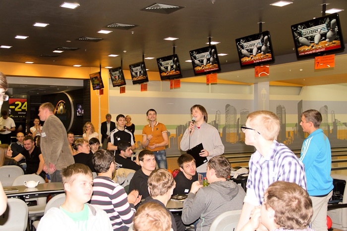 Первый благотворительный турнир27 ноября в боулинг-арене КиноСити прошел первый благотворительный турнир по боулингу. 13 команд боролись за первое место. 27 ноября состоялся первый благотворительный турнир по боулингу на площадке наших хороших друзей, развлекательного комплекса КиноСити. Организаторами турнира являлись мы, благотворительный фонд "Трезвое поколение", молодежный совет Новосибирской митрополии и РК КиноСити. На самом деле идея подобного турнира была задумана еще прошлым летом, но, в силу рабочих обстоятельств, оказалась отложенной в пресловутый "долгий ящик". Тем более ярко воплотилась эта идея в сегодняшний праздник трезвости, здоровья и благотворительности. Задача турнира - собрать часть средств, нужных для постройки спортивной площадки в Заельцовском районе, цель - предоставить легкодоступные занятия спортом на свежем воздухе детям района. Участники собрались самые разнообразные: молодежные пропагандисты здорового образа жизни, руководители и воспитанники реабилитационных центров, православные активисты и просто неравнодушные люди. По результатам первой игры были отобраны команды-победители:
