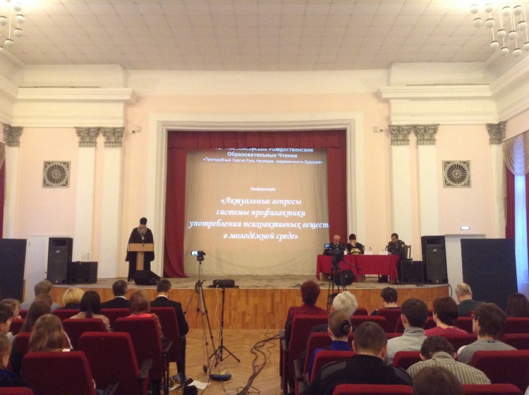 С приветственным словом и докладом выступил Митрополит Новосибирский и Бердский Тихон. Владыка говорил о проблемах современного общества, решать которые придется современной молодежи, в том числе и студентам, заполнившим сегодня актовый зал аграрного университета. «Проблема наркомании, о которой мы много говорим, не самая страшная в России. По статистике, от наркотической зависимости в год умирает около 100 тысяч человек, а от алкоголя – от 500 до 800 тысяч, ежегодно совершается до 8 миллионов абортов. Многие пороки прививаются нам с Запада, но сейчас в Россию импортируются не только наркотики и различные сектантские течения, сейчас молодежь массово принимает радикальный ислам. Главная проблема в том, что народ потерял национальную идентичность и национальное самосознание», - сказал Владыка Тихон. Новосибирская Епархия и Управление федеральной службы по контролю за оборотом наркотиков по НСО проводят большую совместную работу. По словам начальника Управления генерал-лейтенанта полиции Александра Алексеевича Кандикова, за эти годы проведено много мероприятий по профилактике наркомании среди населения. Священнослужители и сотрудники наркоконтроля выезжают в самые отдаленные районы области с конференциями, фильмами, проводят беседы. «Но для искоренения этой социально-духовной болезни много еще предстоит сделать», - отметил глава наркоконтроля. – «Наркомания – не просто негативное социальное явление, это зло, которое ежегодно разрушает судьбы людей. По некоторым оценкам в России 8 миллионов человек употребляют наркотики, а 40 миллионов человек прямо или косвенно вовлечены в эту субкультуру – родственники, друзья, органы наркоконтроля, врачи и т.д. Первопричиной, из-за которой человек начинает принимать наркотики, является внутренняя пустота и отсутствие духовности. Обязанность государства и общества - избавить их от болезни и не вовлечь новых граждан в эту проблему. Но необходима и духовная реабилитация, и в этом нам всецело помогает Новосибирская Епархия». Возглавил работу конференции настоятель Александро-Невского собора Новосибирска, руководитель реабилитационного центра наркозависимых Новосибиркой Епархии протоиерей Александр Новопашин. В качестве ведущего выступил заслуженный артист России Юрий Викторович Беляев. С докладами и сообщениями выступили сотрудники Управления ФСКН по Новосибирской области, врачи, общественные деятели, сотрудники Новосибирской Епархии, преподаватели вузов.