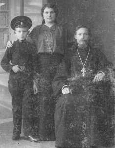 Василий Митрофанович Гоголушко родился в 1881 году на белорусской земле в селе Бобры Лидского района, ныне Гродненская область республики Беларусь. В семье его родителей было четверо детей: три сына и дочь. Жили бедно, но отец очень хотел дать детям образование, и двое сыновей – Адам и Василий – отправились учиться в город Лиды, в учительскую семинарию. По ее окончании Василий работал псаломщиком в церкви села Ласица Глубокского района Витебской области. Но у молодого человека было давнишнее стремление посвятить свою жизнь служению Богу и стать пастырем. Из воспоминаний Веры Ивановны Венскович, внучки отца Василия: «Бабушка (Ольга Викентьевна Гоголушко, жена священника – прим. ред.) нам рассказывала, что Василий Митрофанович закончил пастырские курсы, ректором которых тогда был протоиерей Иоанн Восторгов (в 2000 году прославлен Церковью в лике святых новомучеников и исповедников Российских – прим. ред.). В июне 1911 года его рукоположили в сан иерея. Но тогда существовало правило – если за учебу нечем платить, то необходимо отработать не менее пяти лет в отдаленной местности, где есть острая нужда в священниках. И в тот же год иерей Василий был направлен служить на приход в поселок Дальний Долговской волости Новониколаевского уезда. Сейчас это Новосибирская область, Новосибирская митрополия, а тогда приход относился к Томской епархии. Дальний был большим переселенческим поселком, но церковь в нем построить еще не успели. Поэтому забот у молодого священника было много – сначала выстроили молитвенный дом, а затем батюшка с Божьей помощью принялся за строительство храма. Как вспоминала бабушка, храм стоял на возвышенности и был очень красивый – пятикупольный, построен из кедра на белокаменном фундаменте. Народ в поселке мастеровой, жили дружно, и в семье священника даже не помышляли о возвращении на родину, потому что полюбили они Сибирскую землю и тех людей. И односельчане относились к батюшке с любовью и уважением. Еще на пастырских курсах Василий Митрофанович получил начальное медицинское образование, а врачей-то в округе не было – вот и шли люди к отцу Василию со своими нуждами. Так что он и свои священнические обязанности исполнял, и медицинскую помощь по необходимости оказывал. Да и просто любили сельчане зайти на чай в гостеприимный дом Гоголушко – проблемы обсудить, по душам поговорить». Не зря тянуло людей к священнику и его матушке – в их семье царили любовь и согласие. Из воспоминаний Веры Ивановны Венскович: «Уже давно нет в живых бабушки, но по ее рассказам у меня сложилось впечатление, что мой дедушка Василий был человеком тихим и беззлобным. Даже если просто на фотографию смотреть, то видно, насколько у него мирные черты лица. Между ним и бабушкой была большая человеческая любовь. Дети их говорили, что никогда не слышали, чтобы родители сказали друг другу грубое слово. Всегда все вместе обсуждали, вместе решали. Везде и всюду вдвоем. Бабушка Ольга очень любила жасмин. И мы ее спрашивали: «Почему ты так жасмин любишь? Это такой скромный цветок!» А бабушка улыбалась и отвечала: «Очень много воспоминаний связано с этим цветком – воспоминаний о дедушке, о наших встречах в молодые годы». И вот мирная жизнь страны была прервана страшными социальными потрясениями. Рушилась жизнь Российской империи, и вместе с государство