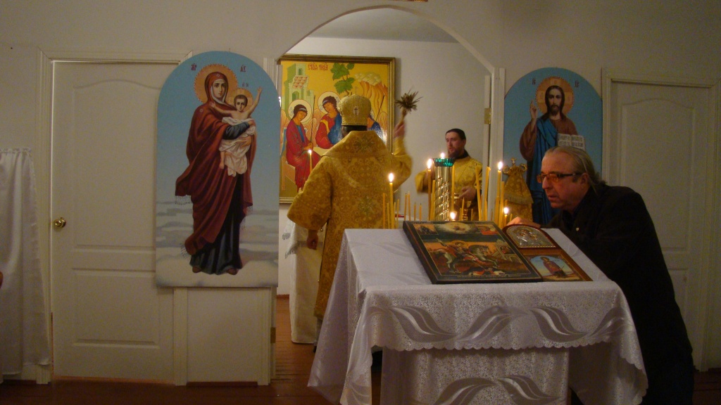 Малое освящение храма в селе Казачий Мыс20 декабря 2013 года епископ Каинский и Барабинский Феодосий посетил село Казачий Мыс Татарского района, где в сослужении протоиерея Александра Соловьева совершил малое освящение храма в честь Дмитрия Солунского. «…аще не Господь созиждет дом, всуе трудишася зиждущии…» Напомним, что не так давно Владыка Феодосий освящал Крест, воздвигнутый на месте престола разрушенного в годы гонений на Церковь сельского храма в честь святого Дмитрия Солунского. И вот, спустя два месяца, состоялось малое освящение. Благое дело – основание дома Божия - получило свое начало и Божие благословение. И собравшиеся в этот день к месту освящения православные жители села свято верят, что совсем скоро колокола нового храма позовут сельскую паству на общую молитву. В ходе визита Преосвященнейший Феодосий провел беседу со школьниками 9,10,11 классов, рассказав о церковных таинствах, особое внимание уделив таинству покаяния, поведал, как правильно приготовиться к причастию Святых Христовых Таин. Денис Васильев