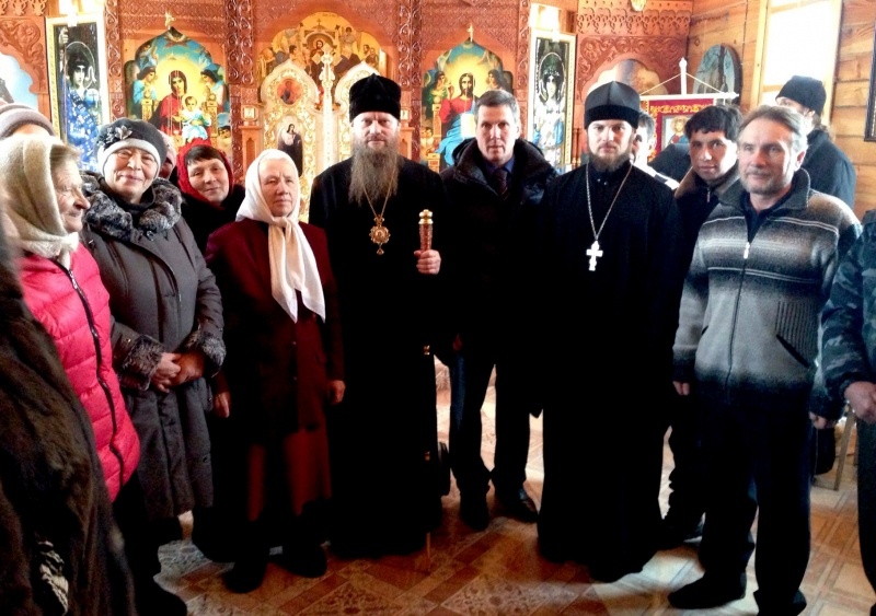 В храме в честь Воскресения Христова с. Мереть Владыке о жизни и проблемах прихода рассказал настоятель иерей Владимир Борзенков.