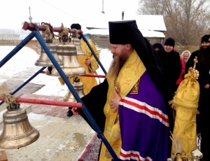 В своем архипастырском слове Преосвященнейший поздравил присутствующих со столь значимым событием для села — освящением колоколов храма. Колокола играют значительную роль в церковной жизни, отметил владыка. В древности благочестивые христиане именовали перезвон церковных колоколов «гласом Божиим». Колокольный звон таинственным образом воздействует на душу человека, преображая и мысли, и чувства, и волю, очищая и настраивая на молитвенное общение с Создателем. В молитвах этого чина призывается благодать Святого Духа, звучат прошения о том, чтобы через звон колоколов верующие побуждались к молитве, укреплялись в борьбе с дьявольскими наветами, чтобы звоном отгонялись всяческие несчастья и непогода, а враг рода человеческого отступал от этого места.