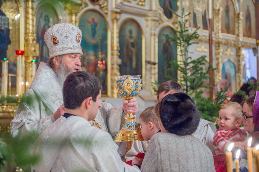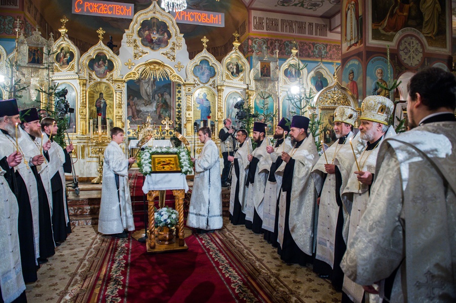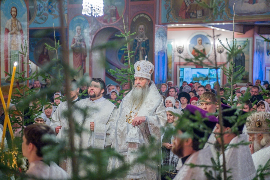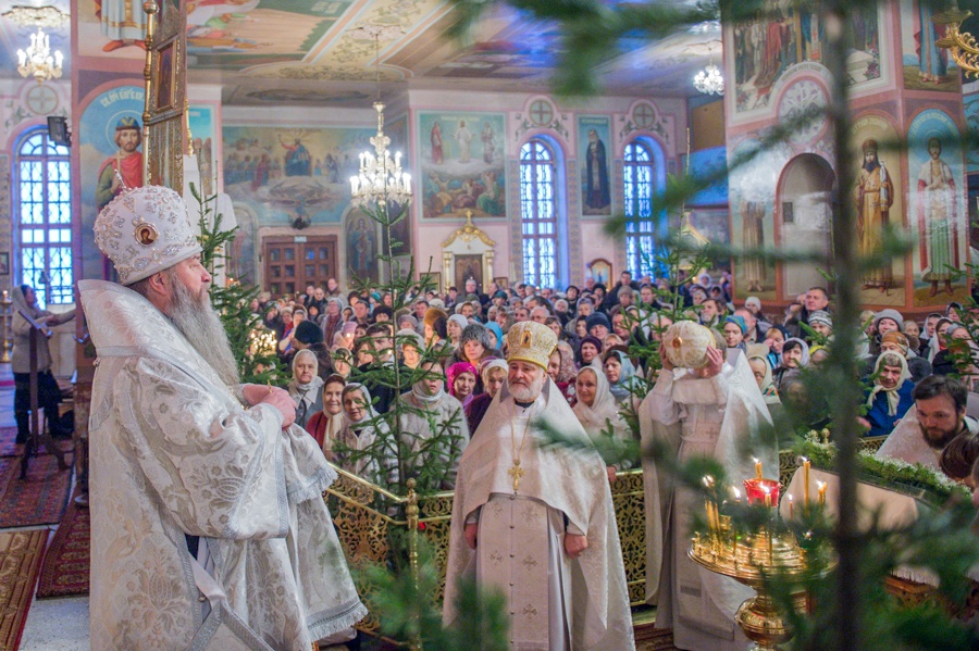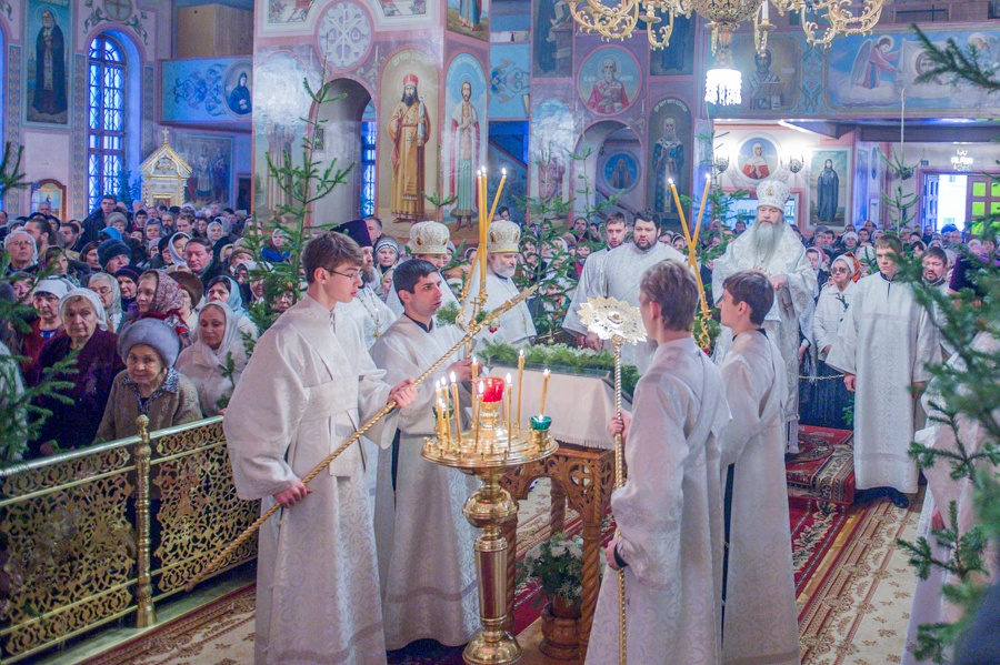 В честь великого двунадесятого праздника Рождества Христова Митрополит Новосибирский и Бердский Тихон возглавил всенощное бдение и Божественную литургию в Вознесенском кафедральном соборе Новосибирска. Фоторепортаж Владимира Осинцева