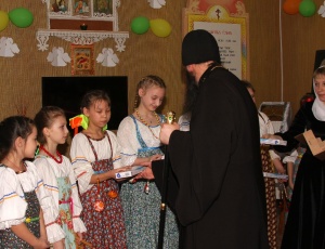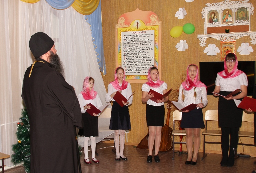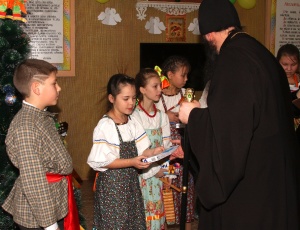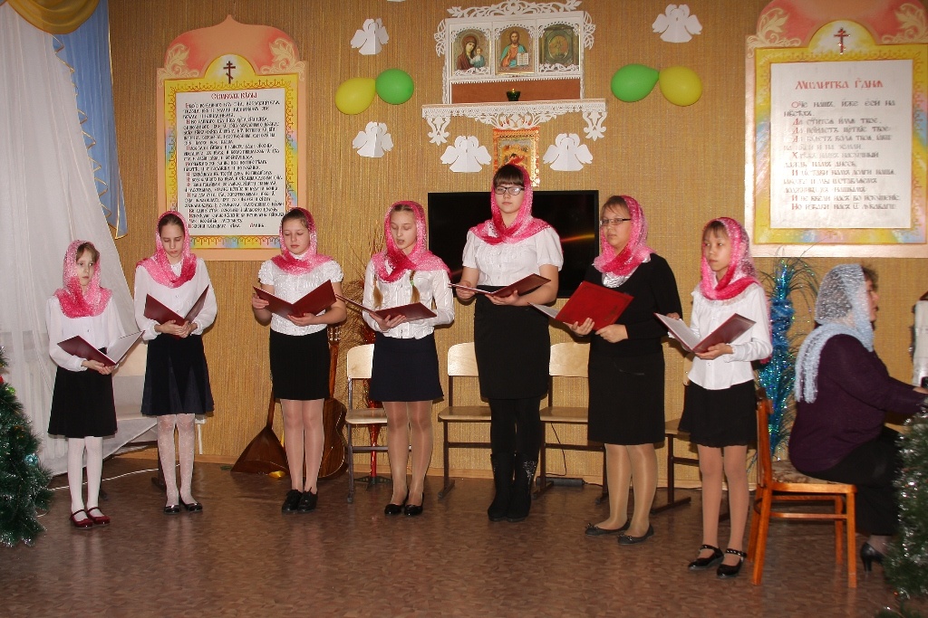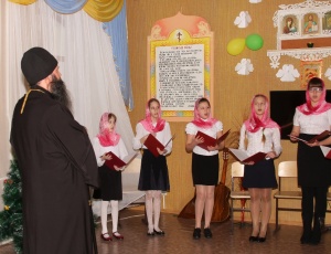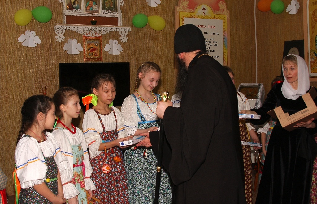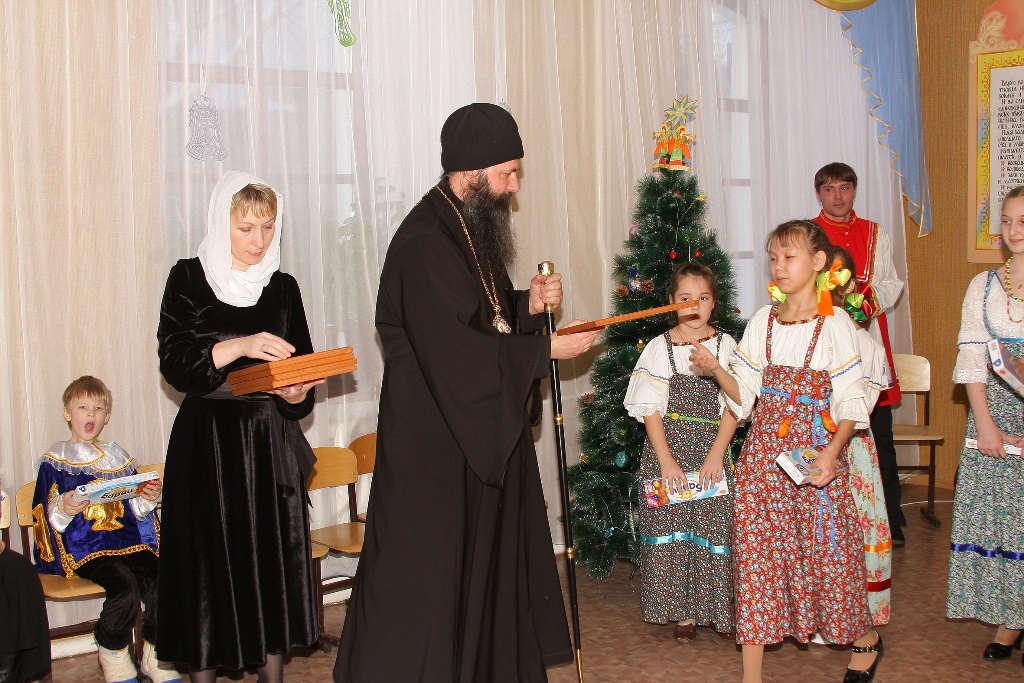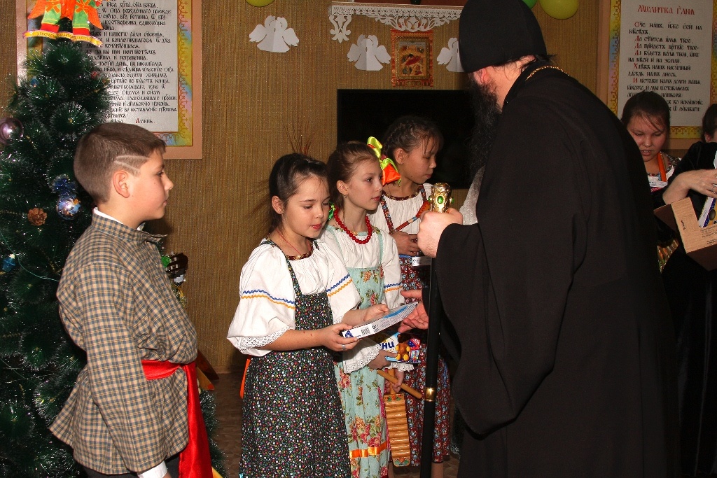 Рождественский концерт в КаинскеПосле Праздничного молебна в здании Воскресной школы г. Куйбышева состоялся Рождественский концерт. Концерт проводился по благословению Преосвященнейшего Феодосия епископа Каинского и Барабинского. Перед концертом дети с воодушевлением спели тропарь Рождеству: Рождество Твое, Христе Боже наш, возсия мирови свет разума: в нем бо звездам служащии, звездою учахуся, Тебе кланятися Солнцу правды, и Тебе ведети с высоты Востока: Господи, слава Тебе. Прихожане с удовльствием слушали песнопения, исполненные вокальной группой под руководством Ларисы Петровой. Детский ансамбль народной песни «Варенька» исполнил несколько песен. Владыка обратился к присутствующим с приветственным словом, поздравил детей с праздником Рождества и подарил подарки.