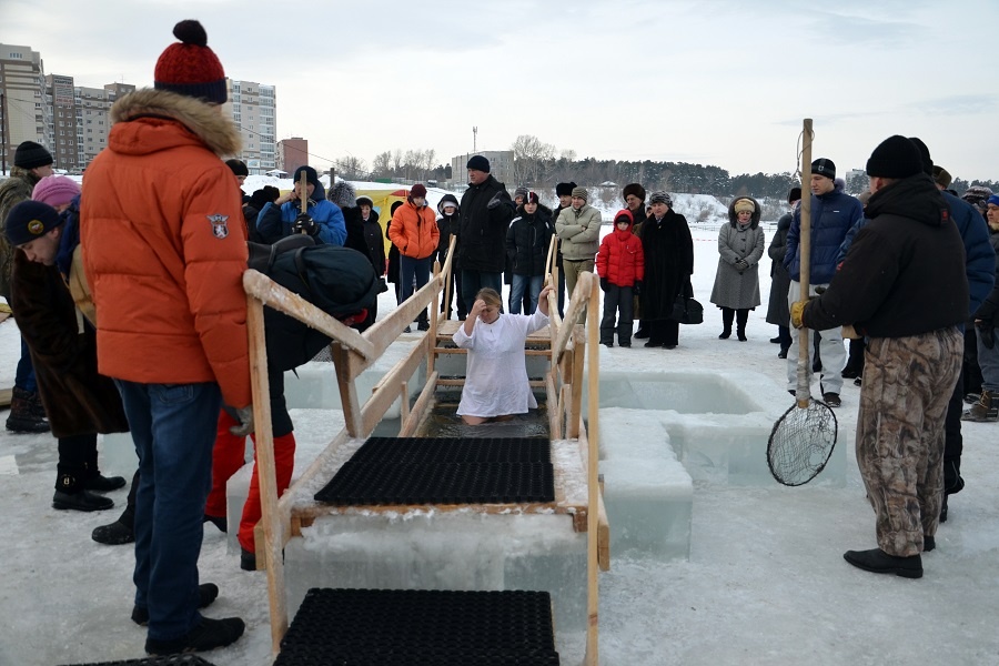 Крещенские купания в Бердске (фоторепортаж)19 января православные христиане отмечали праздник Крещения Господня. Бердчан, окунавшихся в ледяную воду, демонстрировали детям и снимали на мобильные устройства. Но те, не обращая внимания на зевак, ныряли за очищением и здоровьем.