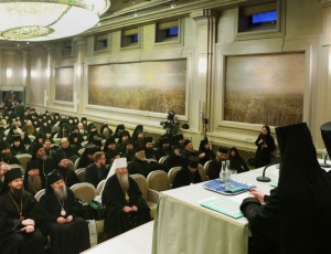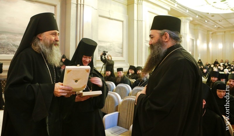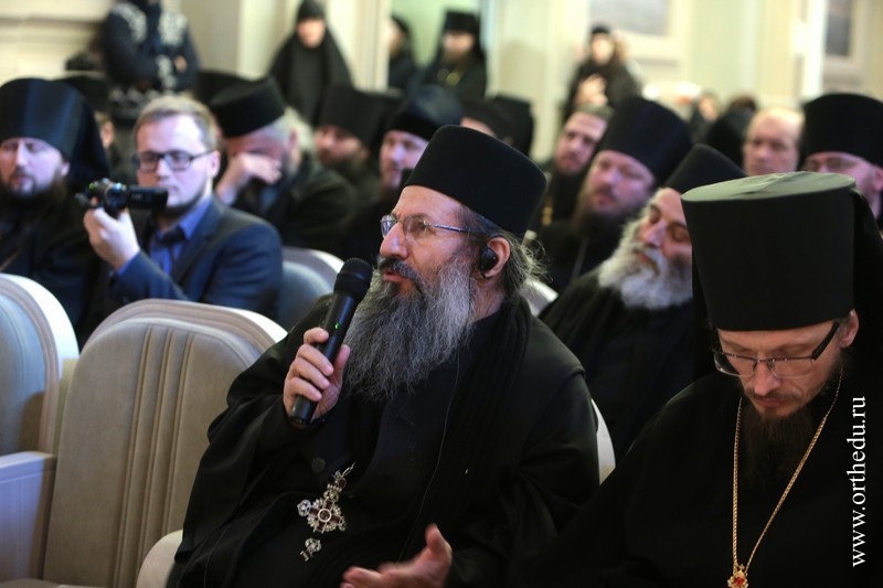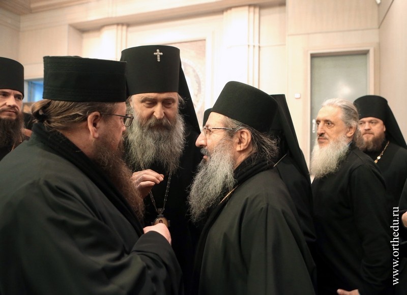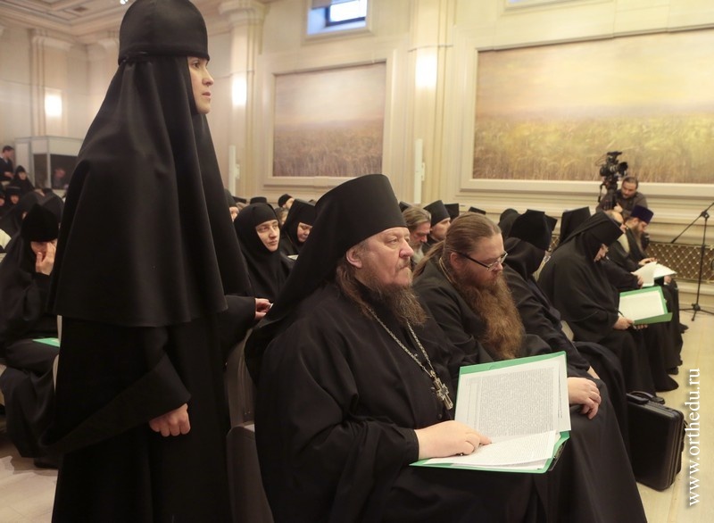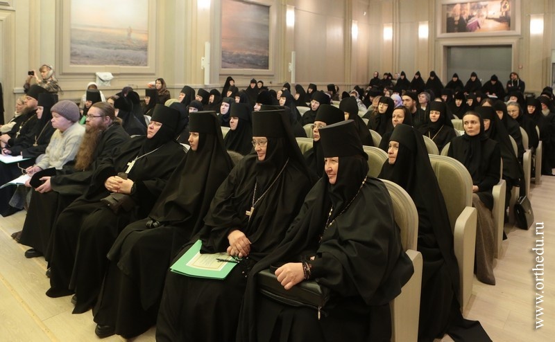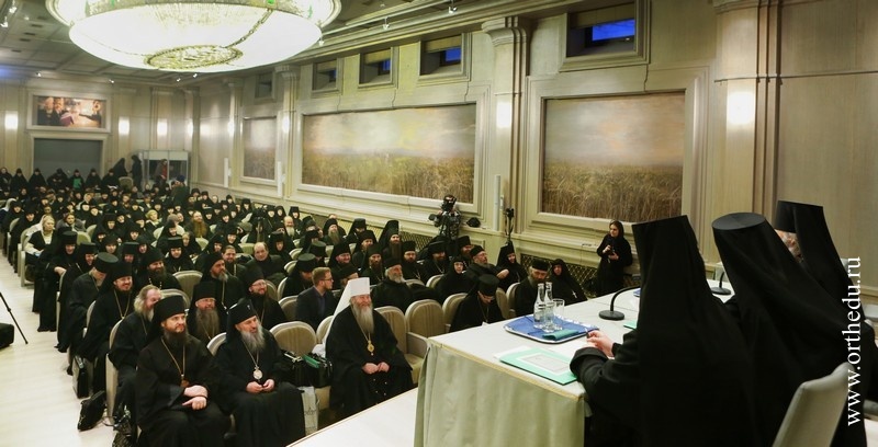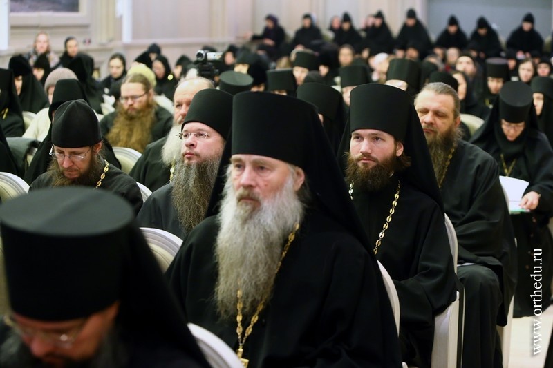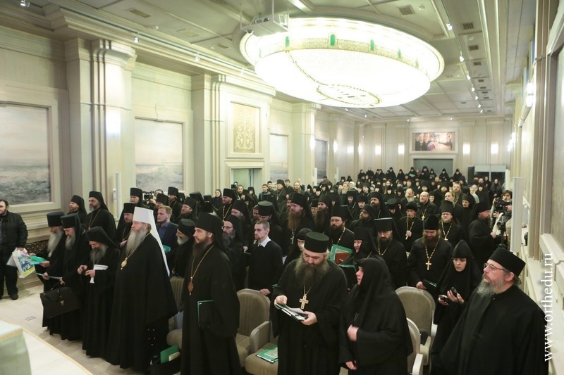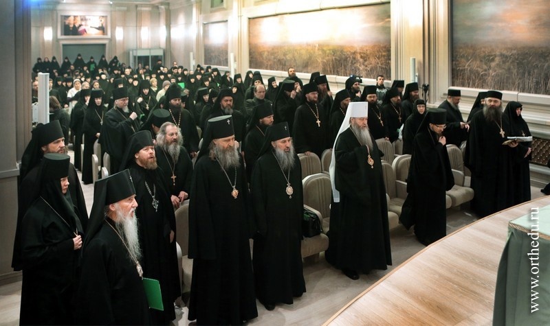 Митрополит Тихон принял участие в работе секции «Монашеская традиция: от древности до наших дней»28 и 29 января в московском Сретенском ставропигиальном мужском монастыре состоялась работа направления «Монашеская традиция: от древности до наших дней» XXII Международных образовательных Рождественских чтений. 28 января в московском Сретенском ставропигиальном мужском монастыре началась работа направления«Монашеская традиция: от древности до наших дней» XXII Международных образовательных Рождественских чтений. В актовом зале Сретенской семинарии собрались более 150 участников — архиереи Русской Православной Церкви, наместники, игумены и игумении, насельники столичных и епархиальных обителей, а также гости Чтений, прибывшие из Греции, со Святой Горы Афон, из Сербии, США и Великобритании. Утреннее пленарное заседание открыл Высокопреосвященный Марк, архиепископ Берлинско-Германский и Великобританский (РПЦЗ). В Президиуме находились митрополит Новосибирский и Бердский Тихон и куратор данного заседания игумения Иулиания (Каледа), заместитель председателя Отдела, настоятельница московского Зачатьевского ставропигиального монастыря. В первой части заседания вниманию присутствующих были предложены три доклада: «Традиция исихазма и ее значение для современного монашества» − митрополита Горийского и Атенского Андрея (Гвазавы) (Грузинская Православная Церковь); «Истоки киновиальной жизни − общежития древних отцов (прп. Пахомий Великий, Савва Освященный, Феодор Студит, Афанасий Афонский)» — архимандрита Елисея, настоятеля монастыря Симонопетра (Святая Гора Афон); «Значение опыта Богопознания для современного монашества»— иеромонаха Николая (Сахарова), насельника Свято-Иоанно-Предтеченского монастыря в графстве Эссекс, Великобритания. 28 января во второй половине дня продолжило работу под председательством епископа Борисовского Вениамина, викария Минской епархии. Куратор − игумения Николая (Ильина), настоятельница Свято-Никольского Черноостровского женского монастыря, г. Малоярославец. Прозвучали доклады, объединенные темой «Традиции обителей преподобного Сергия и его учеников как основание для устроения монашеской жизни в современных обителях»: «Воплощение (преемство) духовных монашеских традиций в Лавре преподобного Сергия и в обителях его учеников» — архимандрит Макарий (Веретенников) (Свято-Троицкая Сергиева лавра); «Возрождение монашества на примере обители преподобного Сергия»− епископ Борисовский Вениамин; «Богослужение и послушание как основа монастырской жизни»− архимандрит Варфоломей, настоятель братства монастыря Эсфигмен (канонического) (Святая Гора Афон). 29 января, в рамках программы, в Сретенском ставропигиальном монастыре состоялся круглый стол на тему «Подвижники нашего времени как хранители монашеских традиций». Заседание проходило под председательством архиепископа Берлинско-Германского и Великобританского Марка (РПЦЗ), куратор – игумения Викторина (Перминова), настоятельница Богородице-Рождественского ставропигиального монастыря г. Москвы. Президиум составили председатель Синодального отдела по монастырям и монашеству архиепископ Сергиево-Посадский Феогност и ответственный секретарь – заместитель председателя Отдела игумения Иулиания (Каледа), настоятельница московско