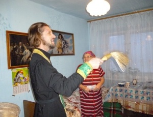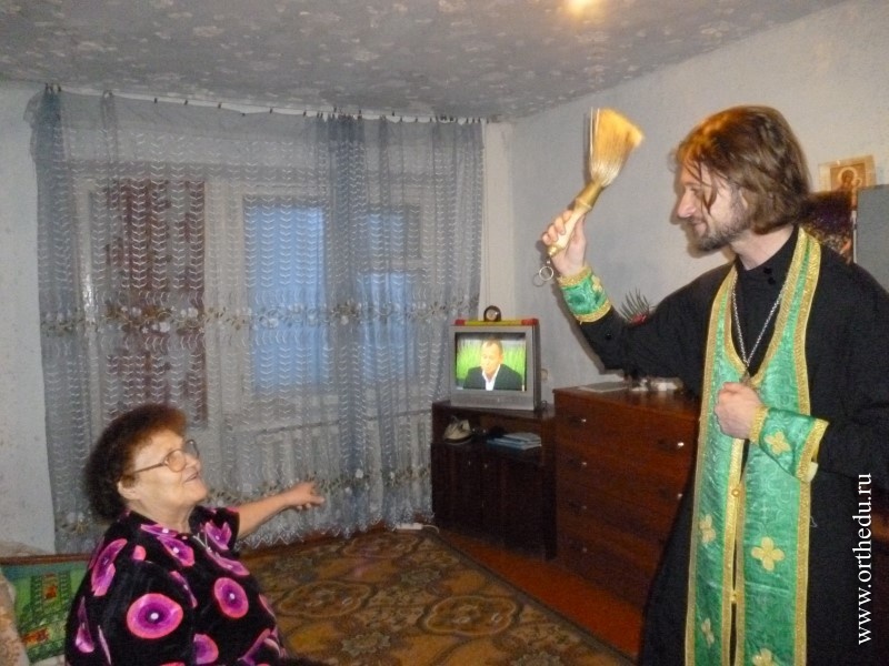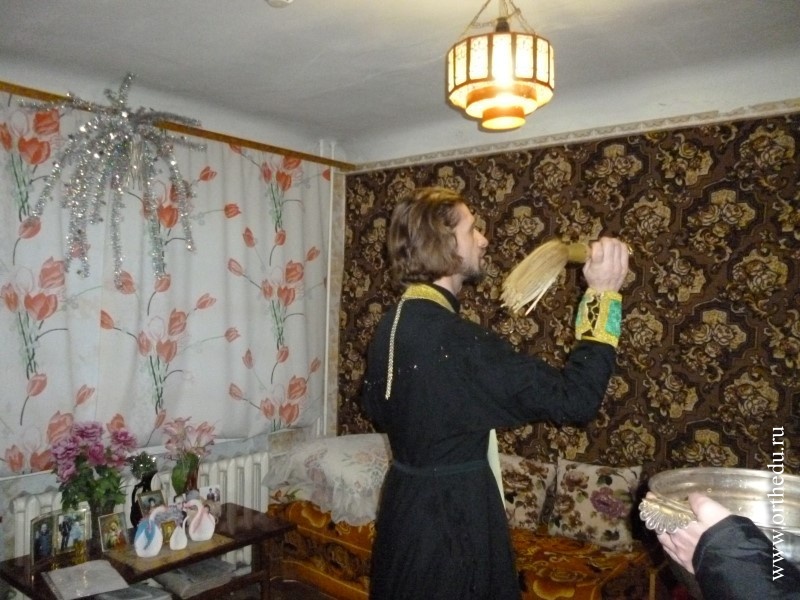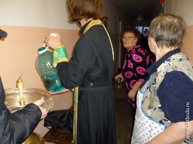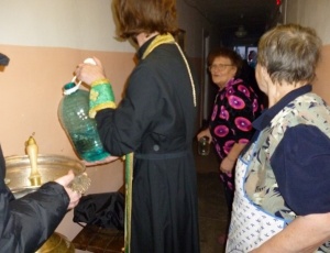 Иерей Сергий Шишов, чьим небесным покровителем и является преподобный Сергий, окропил крещенской водой все жилые помещения, и все старички получили в подарок иконы. Некоторые исповедовались, а некоторые и пополнили свои домашние запасы святой крещенской водой, которую священник обильно раздавал всем тем, кто по немощи не смог сам прийти в день праздника Крещения Христова в Собор и почерпнуть святыни.