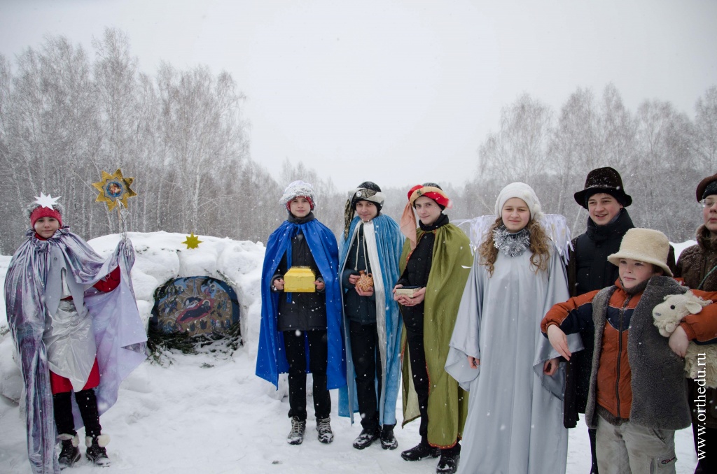 Рождественское славление у Зашиверской церквиВ нескольких километрах от Академгородка расположился Историко-архитектурный музей под открытым небом Института археологии и этнографии СО РАН. Здесь находится чудом сохранившаяся на севере Якутии и привезенная в Новосибирск старинная Спасо-Зашиверская церковь. В святые дни Рождества Христова усилиями Института археологии и этнографии прошел праздник «Рождество в музее». Несмотря на отдаленность от маршрутов общественного транспорта 11 января на праздник в старинной церкви собралось множество детей и взрослых из г. Новосибирска, Академгородка, Бердска, наукограда Кольцово. В начале программы с приветственными словами к присутствующим обратились протоиерей Борис Пивоваров и директор ИАЭТ академик Анатолий Деревянко. В празднике приняли участие ученики Православной Гимназии во имя Преподобного Сергия Радонежского из Академгородка. Славление Христова Рождества началось в шатре, где гимназисты показали Рождественское представление. Зрители увидели пастухов у костра и явившегося им Ангела, а также восточных мудрецов-волхвов, которых вела за собой к Рождественскому вертепу Вифлеемская звезда. Гимназический хор пел рождественские песнопения. Сотрудники музея соорудили прямо рядом с Зашиверским храмом традиционный Рождественский вертеп из снега. Туда и отправились вслед за Звездой волхвы в разноцветных плащах и тюрбанах, а за ними потянулись и все гости праздника. У вертепа, куда волхвы принесли свои символические дары, гимназисты рассказывали рождественские стихи и пели колядки. Для гостей и участников праздника были организованы различные аттракционы: катание с горок, катание на лошади, запряженной в сани. Всех поили горячим чаем. А на веранде административного здания музея фольклорный коллектив Народной песни Дома ученых встречал игровой программой и крестьянскими рождественскими песнями. В этом же административном здании музея на втором этаже, в тепле, в традиционном интерьере сибирского жилища, сотрудники музея организовали для желающих тематический мастер-класс «Рождественская игрушка» и выставку сувениров. Участники мастер-класса получили возможность создать своими руками оригинальную елочную игрушку (сшить из фетра или раскрасить гипсовую заготовку). Благодаря этому празднику многие приобщились радости светлого праздника — Рождества Христова.