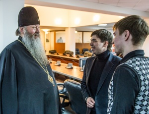 Митрополит Тихон: "В духовной культуре главное - уважение к другому человеку, к личности"12 февраля в Сибирской академии государственной службы в рамках общеинститутского семинара "Инновационная среда" состоялась встреча Митрополита Тихона со студентами и преподавателями вуза. Приветствуя собравшихся в конференц-зале, Митрополит Тихон поблагодарил ректора СибАГСа Сергея Робертовича Сверчкова за приглашение побеседовать со студентами и сотрудниками академии. Владыка напомнил, что в 90-е годы именно в стенах академии госслужбы начались занятия Новосибирского Свято-Макарьевского богословского института.