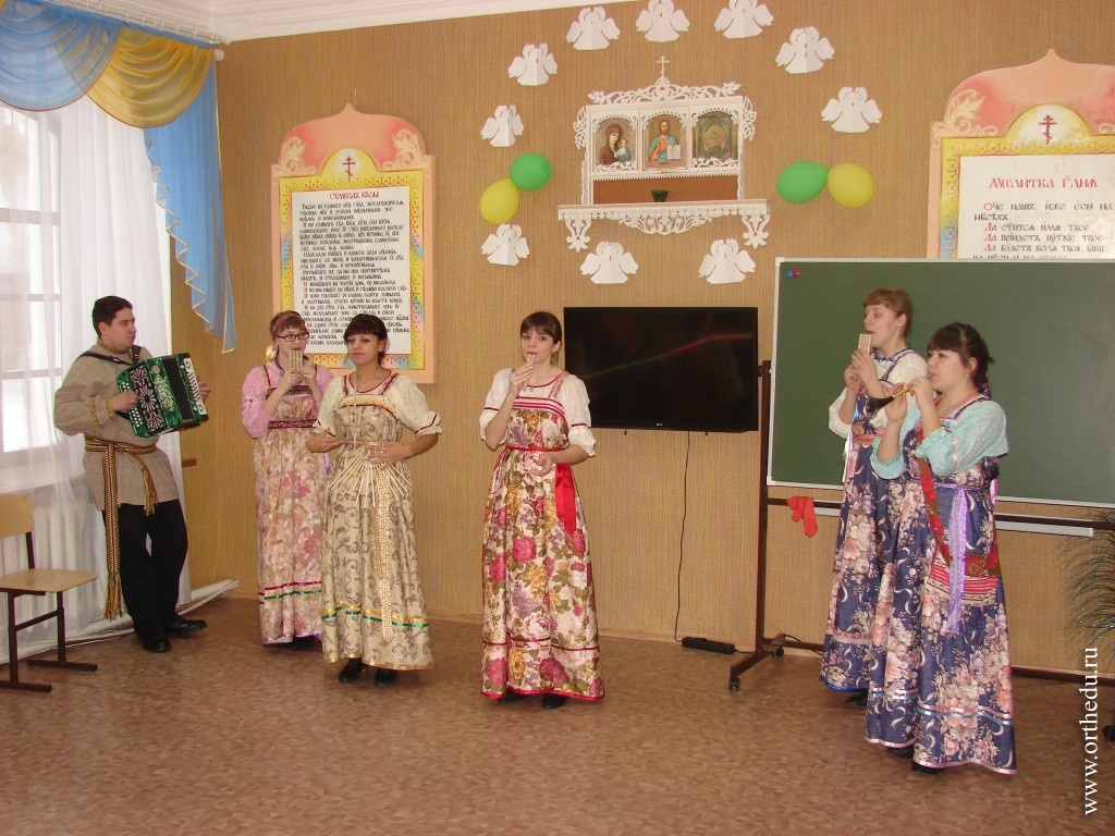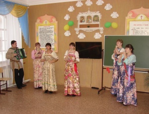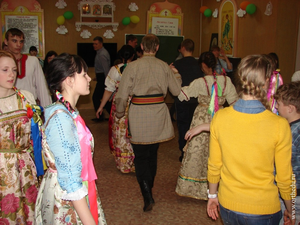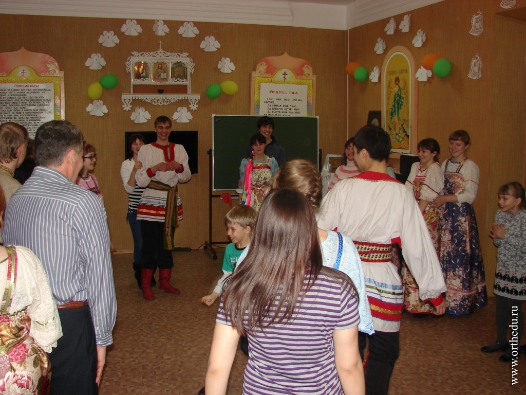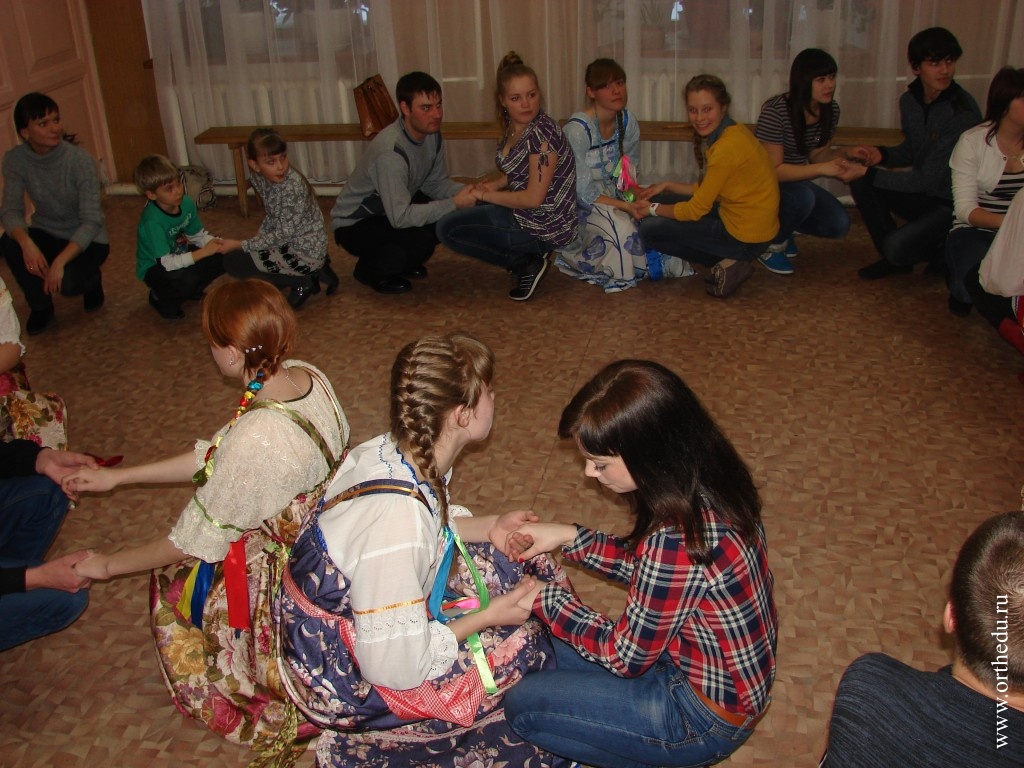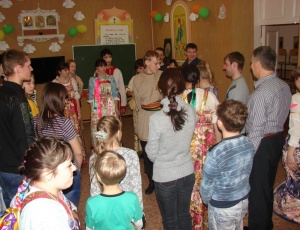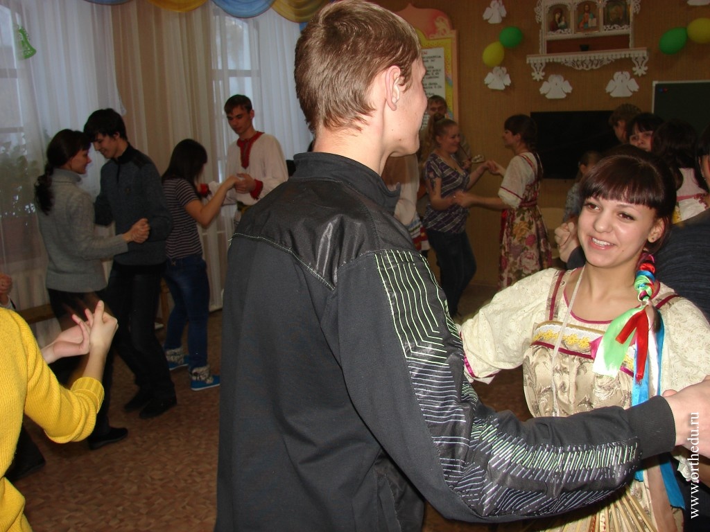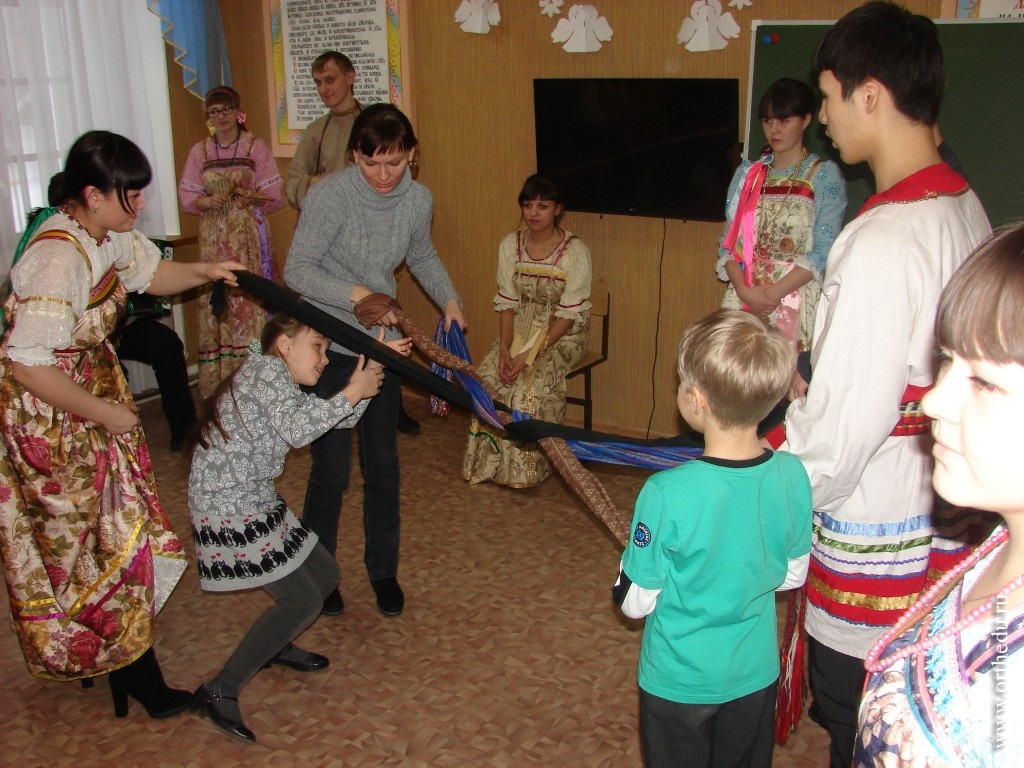 Русская народная вечёрка в Каинске (фоторепортаж)25 февраля в здании Церковно-приходской школы Кафедрального собора г.Куйбышева состоялась русская народная вечёрка. Мероприятие проводилось усилиями студентов Колледжа культуры г.Барабинска. Вечёрка — это в первую очередь праздник. И это когда не тебя веселят, а когда ты сам веселишься. Сейчас уже почти перестали петь вместе, забыли песни. При этом зрителей как таковых нет, все участвуют, все поют, все танцуют, обычно под гармошку, водят хороводы. Не беда, если не знаешь песен и танцев. Самое главное, чтобы кто-нибудь знал, как петь, как танцевать, и мог простым языком объяснить и показать это другим. Ребята из колледжа культуры знали все это на отлично и с удовольствие учили других. Некоторые слова и движения учатся на ходу. Очень часто слова в народной песне повторяются не один раз. В отличие от академического искусства, народные музыкальные формы сами по себе предназначены для включения любого, было бы желание. Вечёрка не первый и не последний раз проводится на приходе.