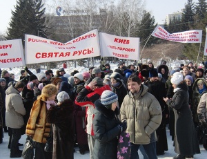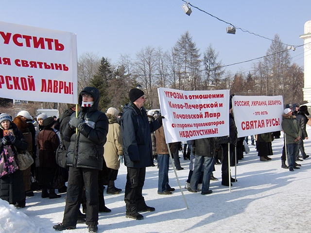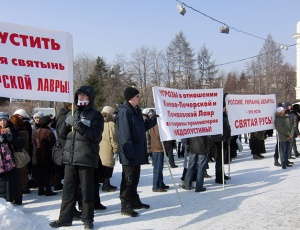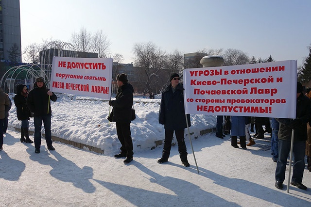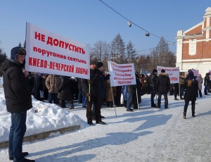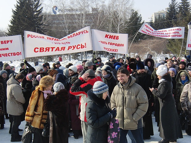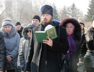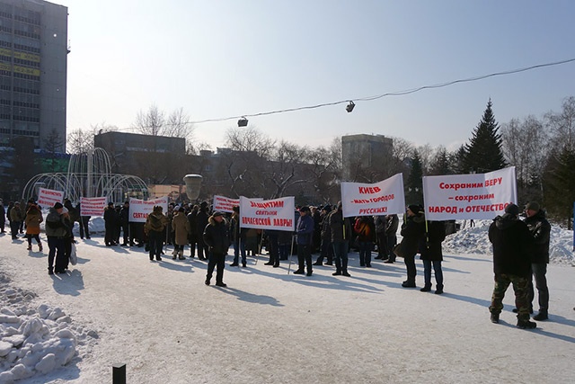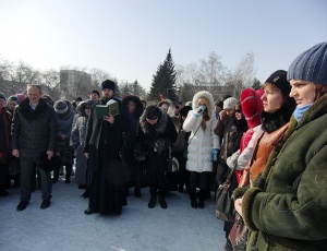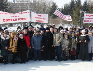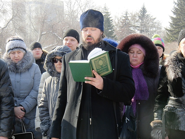 В Новосибирске прошло молитвенное стояние в защиту православных святынь УкраиныПо благословению Его Высокопреосвященства, Высокопреосвященнейшего Тихона, митрополита Новосибирского и Бердского, 9 марта (воскресение), в День Торжества Православия, в Первомайском сквере г. Новосибирска в 13:00 состоялся пикет: В ЗАЩИТУ ПРАВОСЛАВНОЙ ВЕРЫ И СВЯТЫНЬ НА УКРАИНЕ. Трагические события в Киеве начались в ноябре прошлого года. В феврале 2014-го беспорядки вылились в массовые бесчинства, в результате которых погибли люди. Все закончилось государственным переворотом. Сегодня обязанности президента исполняет баптистский пастор (Александр Турчинов), а премьер-министром Украины стал женатый на униатке греко-католик (Арсений Яценюк), хотя, по данным СМИ, в том числе украинских, он много лет является последователем секты сайентологов, а его сестра руководит крупнейшей сайентологической организацией в США. Уже через сутки после того, как Янукович сдал свои позиции, воинственно настроенные люди попытались захватить Киево-Печерскую лавру. Они потребовали от монахов подобру-поздорову освободить монастырь. В противном случае, как только поступит соответствующий приказ сверху от самого «патриарха» Филарета (главы самозваной религиозной организации «УПЦ – Киевский патриархат», образованной в 1992 г. при деятельном участии тогдашнего президента Украины Леонида Кравчука), экстремисты пообещали применить силу. К счастью, реальная угроза захвата святыни миновала, однако вскоре появилась новая угроза: в опасности оказалась Почаевская лавра, на которую – напомним - давно претендует «Украинская Греко-католическая церковь». Нападкам экстремистов подвергалось и Сумское епархиальное управление – представители самопровозглашенного «Киевского патриархата» пообещали закидать кафедральный Спасо-Преображенский собор города коктейлями Молотова, если их «епископу» не предоставят возможность служить в этом храме. В связи с угрозой насильственных действий в отношении канонической Церкви на Украине 26 февраля на заседании Высшего Церковного Совета Русской Православной Церкви было принято заявление, в котором члены Совета поблагодарили тех, «кто уже вставал на защиту храмов и обителей, не дав подвергнуть их поруганию и отторгнуть от истинной Церкви» и призвали всех православных христиан Украины не допустить посягательств на святыни. «Вознося молитвы о прекращении распрей в среде братского украинского народа, призываем помнить, что путь к гражданскому миру на Украине исключает религиозное противостояние, привнесение розни в стены храмов и монастырей», - говориться в Заявлении. В Прощеное воскресенье ко всем пастырям и чадам Украинской Православной Церкви обратился Святейший Патриарх Московский и всея Руси Кирилл. Святейший отметил, что братство русского, украинского и белорусского народов - реальность, выстраданная историей и многими поколениями наших предков. Эта реальность, живущая в наших сердцах, должна определить наше будущее, и ее нельзя приносить в жертву сиюминутным интересам. В неделю Торжества Православия настоятель Александро-Невского храма в Новосибирске митрофорный протоиерей Александр Новопашин во время проповеди сообщил прихожанам храма, что по благословению Митрополита Новосибирского и Бердского Тихона и по инициативе