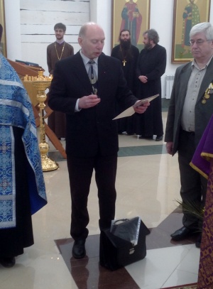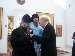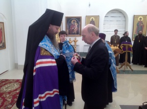В Искитиме состоялось торжественное награждение Императорскими медалями27 марта 2014 года в кафедральном соборе святителя Николая Мир Ликийских Чудотворца Искитима состоялся торжественный молебен перед Феодоровской иконой Божией Матери. По его окончании председатель Новосибирского Дворянского собрания Константин Евгеньевич Милевский по поручению Канцелярии Главы Российского Императорского Дома Великой Княгини Марии Владимировны огласил указ о награждении Преосвященного Луки, епископа Искитимского и Черпановского, протоиерея Игоря Затолокина и иерея Виктора Зотина Императорскими медалями «В память 400-летия Дома Романовых» и «Юбилей всенародного подвига. 1613-2013». В статусе награды «В память 400-летия Дома Романовых», учрежденной Великой Княгиней Марией Владимировной, указывается: «Правом ношения этой медали награждаются по указу главы Российского Императорского Дома лица, имеющие видные заслуги перед Россией и Российским Императорским Домом, внесшие значительный вклад в возрождение духовности, науки, культуры и образования, государственных и национальных традиций, за помощь социально незащищенным и нуждающимся соотечественникам, за укрепление братских отношений между народами», а в Положении о медали «Юбилей всенародного подвига. 1613-2013» говорится, что она была учреждена «для награждения соотечественников, отличившихся на месте своего служения, и иностранных граждан, деятельно проявивших любовь и уважение к нашему великому Отечеству». Преосвященный Лука в пастырском слове особо отметил огромный вклад Дома Романовых в становление России: "Именно в правление династии Романовых Россия стала империей, строились новые монастыри и храмы, просияли тысячи святых. Сегодня мы совершили молебен перед иконой Федоровской Божьей Матери, которая является покровительницей царского рода, Дома Романовых. Перед ней молятся о спасении нашего Отечества». Константин Евгеньевич Милевский в приветственном слове отметил большой вклад епископа Луки и духовенства епархии в дело духовно-нравственного возрождения на Искитимской земле. Он поблагодарил духовенство и всех прихожан, собравшихся в этот день на молебен, и выразил надежду на дальнейшее плодотворное сотрудничество.