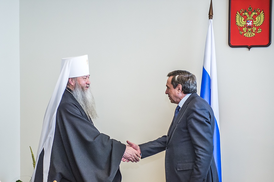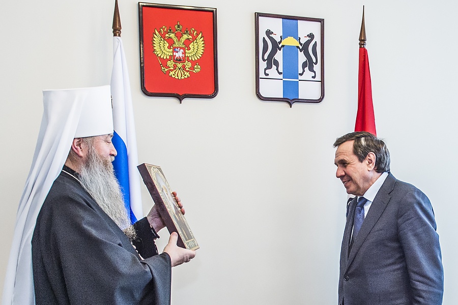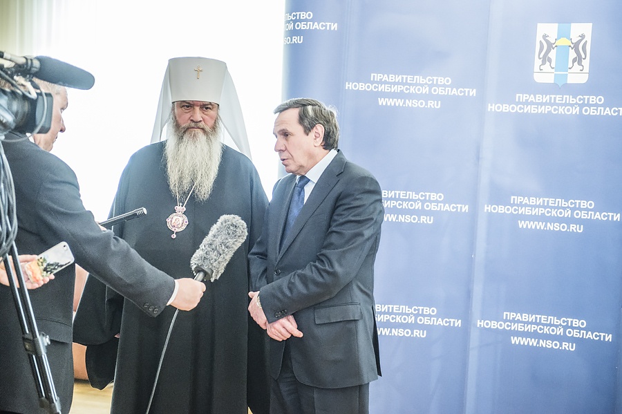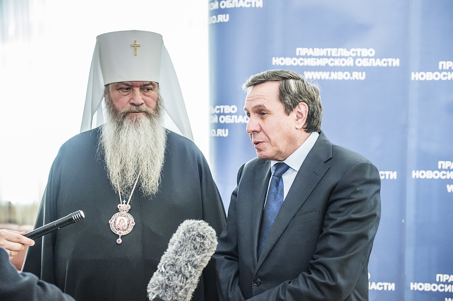 Митрополит Тихон: Во всем должно преобладать добро, тогда и Божия помощь будет рядомСостоялась встреча Митрополита Тихона с и.о. Губернатора Новосибирской области Владимиром Городецким. Во встрече также приняли участие архиереи Новосибирской Митрополии, председатель Комитета по связям с религиозными и национальными организациями Администрации Губернатора Новосибирской области Анна Лопарева, а также представители Правительства и Новосибирской Епархии. Открывая встречу, исполняющий обязанности Губернатора области Владимир Филиппович Городецкий отметил важность взаимодействия Правительства Новосибирской области и Новосибирской Митрополии. Владимир Филиппович сказал также, что за годы совместной работы с Митрополитом Тихоном всегда отмечалось эффективное взаимодействие и человеческое понимание. "Каждый день города мы отмечали открытием или освящением храма. Это была наша совместная работа. Я преклоняюсь перед Владыкой, который ведет большую работу в области", - говорит исполняющий обязанности губернатора. "Во всем должно преобладать добро, тогда и Божия помощь будет рядом. Я настроен на дальнейшее взаимодействие. При моем посещении сельских территорий я буду встречаться с епископами Митрополии, поддерживать их. Есть проблемы, которые надо решать вместе, учитывать общественное мнение, ситуацию, но желание сотрудничать и вместе сделать что-то доброе – это самое важное, что объединяет весь наш народ», - подчеркнул Владыка Тихон. «Обоюдное желание всегда было и будет дальше, я в этом убежден», – подтверждает Владимир Филиппович. Новосибирской Епархией, при поддержке мэрии Новосибирска, реализуются многие социальные проекты. Главы епархий Митрополии и руководство области обсудили ход реализации «Программы–120», принятой в рамках Соглашения о сотрудничестве между Правительством области и Новосибирской Митрополией в дни визита Патриарха Московского и всея Руси Кирилла в Новосибирск в 2013 году. Также был затронут вопрос о выполнении Федеральной целевой программы «Укрепление единства российской нации и этнокультурное развитие народов России (2014–2020 годы)» через проекты создания Духовно-просветительских центров в епархиях Новосибирской Митрополии Русской Православной Церкви. В завершение встречи Владыка Тихон преподнес Владимиру Филипповичу Городецкому икону князя Владимира – крестителя Руси и небесного покровителя исполняющего обязанности Губернатора.