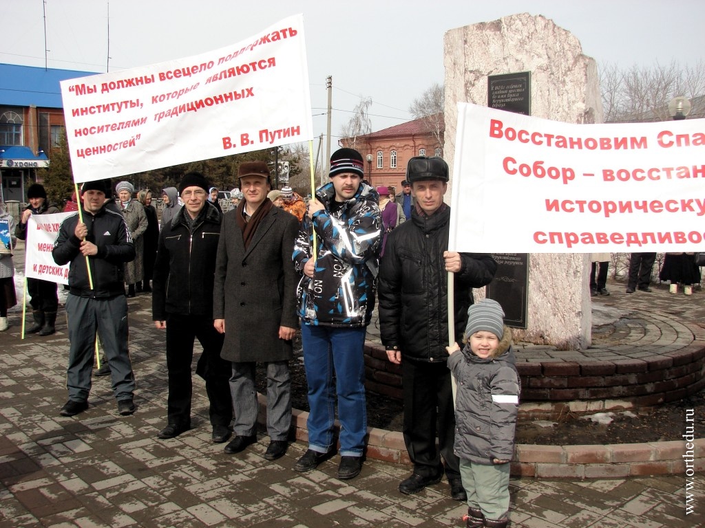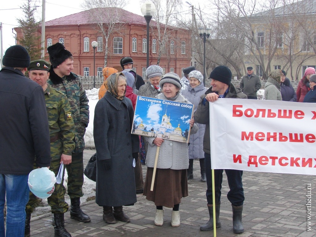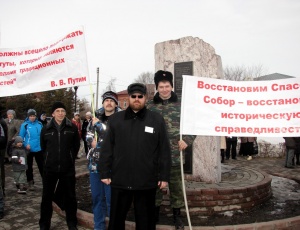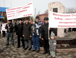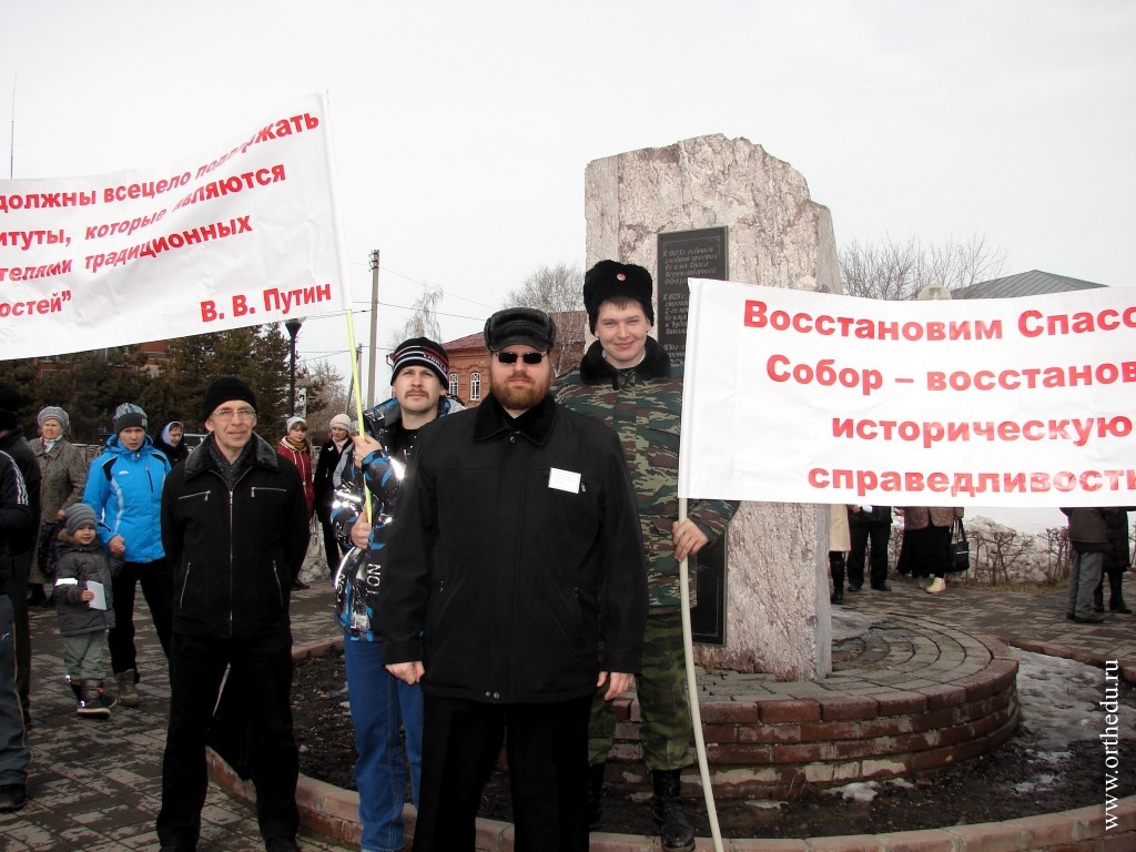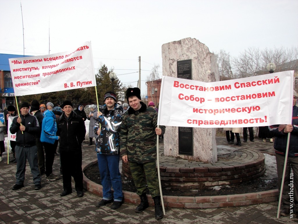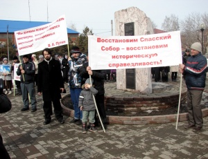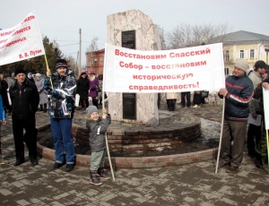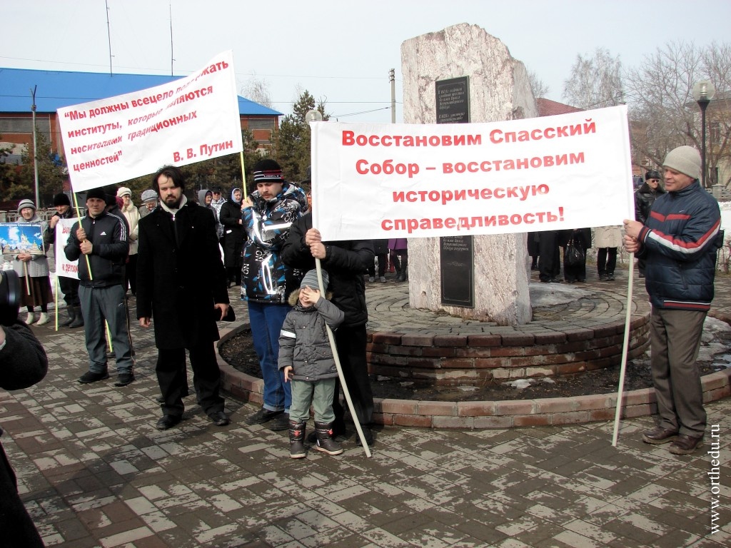 Восстановим Спасский собор30 марта 2014 года в г. Куйбышеве (Каинске) усилиями общественности прошел Пикет в поддержку восстановления Спасского собора. К сожалению, до этого момента между Каинской епархией и Администрацией города не было полного взаимопонимания по данному вопросу. На месте, где до разрушения стоял Спасский собор, в настоящее время разбит сквер. Центром сквера является памятный знак, камень с табличкой, содержащей информацию о соборе, даты строительства, освящения и разрушения. Сбоку памятник В.В.Куйбышеву, в честь которого был назван город в советское время, историческое название города — Каинск. Заместитель главы города Куйбышева Нагель Владимир Георгиевич, комментируя данный вопрос, сказал, что администрация города не против восстановления Спасского собора, но есть нерешенные вопросы. В частности, вопрос переноса памятника В.Куйбышеву, коммуникаций, организации движения на период строительства и после и т. д. Нужно собраться и обсудить. Православная общественность надеется на соответствующее обсуждение. На пикете присутствовало около 100 человек. Приняли участие и казаки местной станицы Каинской.