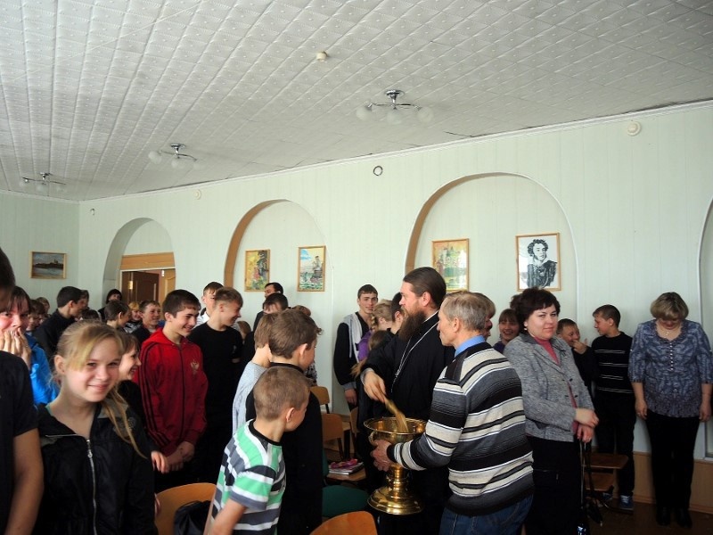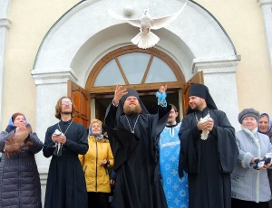 Встреча с детьми-сиротами в праздник Благовещения Пресвятой Богородицы в г. Купино (видео)7 апреля, в день праздника Благовещения Пресвятой Богородицы, Его Преосвященство епископ Филипп возглавил Божественную Литургию в храме св. апостола Луки г. Купино в Каинской Епархии, ему сослужили благочинный Центрального округа иеромонах Мелхиседек (Свистелин) и иерей Сергий Шишов. По окончании Литургии Владыка поздравил настоятеля и прихожан храма с праздником Благовещения Пресвятой Богородицы. Затем епископ Филипп, духовенство и прихожане по традиции выпустили в небо белых голубей. Белый голубь с древних времен олицетворяет мир и благодать Божию. В этот день епископ Филипп посетил школу-интернат в г. Купино, где встретился с детьми-сиротами, многих из них перевели сюда из Мошковской школы-интерната. В настоящее время многие детские дома и интернаты закрывают или сокращают, а детей распределяют в другие детские дома или школы-интернаты нашей области. Дети просили Владыку, чтобы он не забывал их и приезжал к ним в гости и в эту школу. Особенно они просили, чтобы Владыка взял их в этом году в свой православный детский лагерь. Владыка обрадовал детей, сказав, что постарается приезжать к ним на праздники. В завершение встречи Владыка окропил всех святой водой, раздал иконы Пресвятой Богородицы и пообещал приехать к детям после праздника Пасхи.