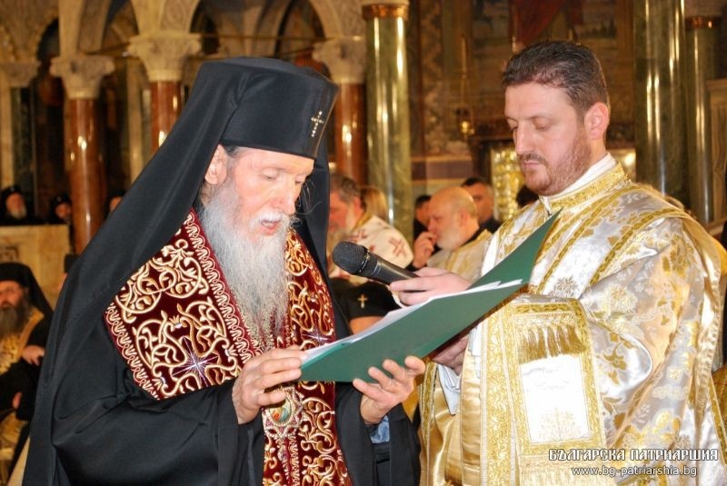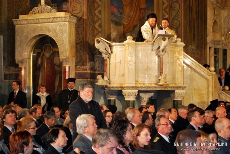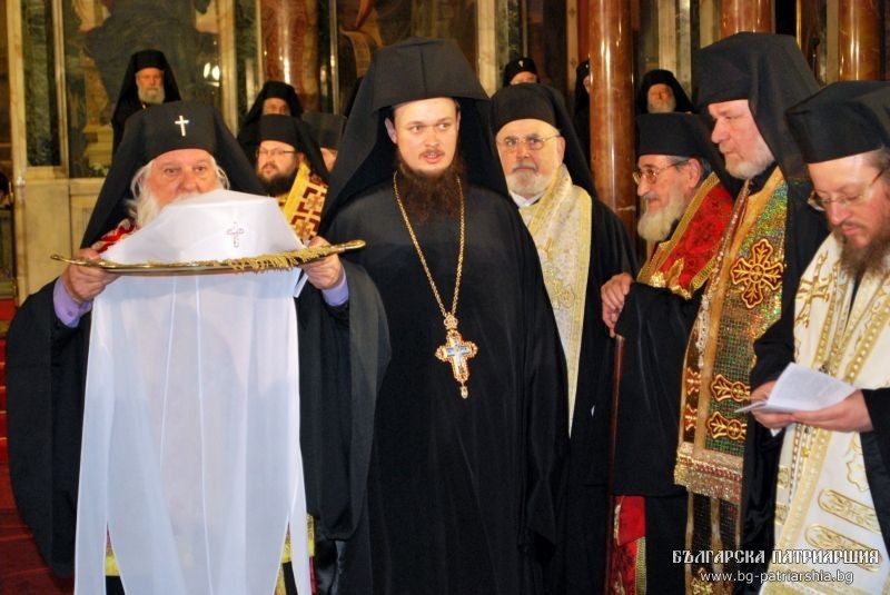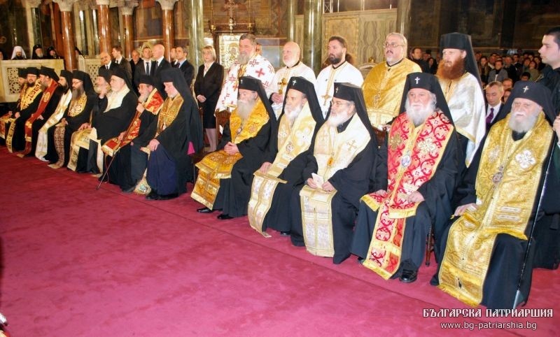 А еще – епископ Адрианопольский Евлогий, епископ Тивериопольский Тихон, епископ Знепольский Иоанн,[7] епископ Величкий Сионий, епископ Драговитийский Даниил, епископ Траянопольский Киприан, епископ Аготоникийский Борис, епископ Константийский Антоний, епископ Провадский Игнатий, епископ Братицкий Григорий, епископ Главиницкий Иоанн, епископ Мелнишкий Серафим. Также с ними сослужили, приняв участие в общей молитве: архим. Дионисий – начальник Богослужебного отдела при Свящ. Синоде, архим.Феоктист – представитель Болгарского Патриархата в Москве, архим. Афанасий – председатель БПЦО[8] в Афинах, представитель Московского Патриархата в Софии архим.Филипп и иеромонах Зотик – священнослужитель в Русском подворье Св.Николая Чудотворца, представители румынского Патриархата в Болгарии – ставрофорный эконом[9] Нелуц Опря, храмовое духовенство в лице ставрофорного эконома Костадина Гаврилова и священника Антония Милушева, софийское священство, диаконы – Иван Петков, Александр Нешев, Петыр Симеонов и Радко Иванов, патриаршими иподиаконами.