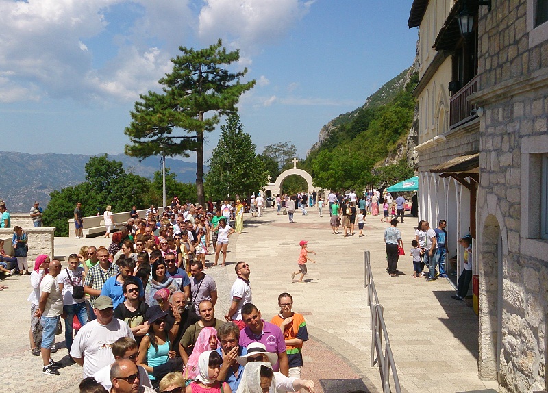 В 08:20 должен был состояться вылет. Беспокойство начало подкатывать, когда в нужное время на табло не отобразилось время посадки в самолет. В 11:00 высветилось сообщение, что рейс перенесли на 14:00, в 14:00 – что на 16:00, в 19:00 нас посадили в самолет, но якобы из-за «технической неисправности» он не полетел. В 23:00 мы разместились в гостинице, в 03:00 ночи следующего дня нас привезли, в 05:00 посадили в самолет, в 07:30 мы, наконец, отправились в Черногорию. Через три часа мы прибыли в аэропорт Тивата. Посадку опять не дают, кружим еще час над городом. Признаюсь, этот день был серьезным испытанием для моей нервной системы, как и для 280 других пассажиров. «Злосчастный рейс прилетел!», – этими словами встречали нас представители турфирмы. Монастырь в скале В нашем распоряжении всего неделя. Нужно успеть по максимуму посетить все запланированные места. Не теряя ни дня, мы записываемся на экскурсию в монастырь Острог – действующий сербский православный монастырь в Черногории, расположенный в горах в 15 км от города Даниловграда, на высоте около 900 м над уровнем моря. Основан в XVII веке.