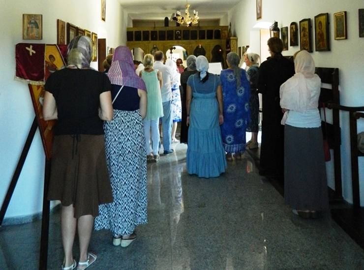 Русская служба, действительно, была здесь. На обочине стояли припаркованные машины. У раскрытых дверей крохотной приземистой каменной однопредельной церквушки толпились люди, на улицу неслось торжественное чтение апостола. Судя по интерьеру церкви, именно она и фигурировала в описании, приведенном в интернете. Кто-то просто спутал, очевидно, из-за общности наименований, два храма, расположенных в разных местах, но служащих одному и тому же. Уже после службы отец Георгий, которого удалось немного расспросить, сообщил, что сам он – клирик пафосского храма святых апостолов Павла и Варнавы, русский язык знает потому, что учил его в русской школе в Грузии, откуда сам родом. А богослужения на церковнославянском совершаются для русскоязычной общины уже более семи лет. Потом прихожане рассказали, что маленький заброшенный храм святого Георгия, предоставленный Пафосской митрополией русскоязычной общине, был восстановлен усилиями православных греков-понтийцев (потомки выходцев из исторической области Понт, во время гонений на христиан в Османской империи нашедших приют в пределах России). Их немало живет в Пафосе. Свой священник появился у общины около семи лет назад, когда один из членов прихода, ревностный в вере иммигрант с техническим образованием, принял священный сан. Но, разумеется, ходят сюда не только греки.