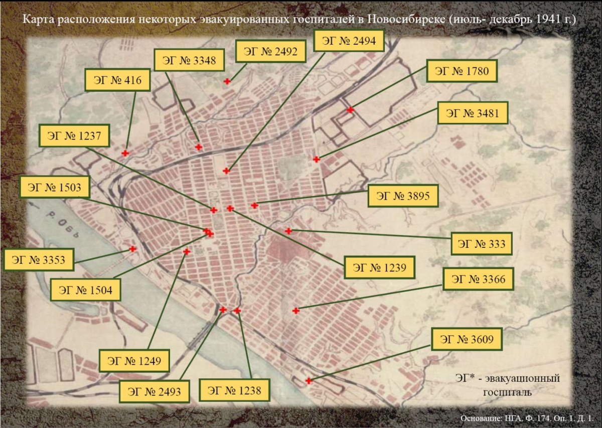 Операция в госпитале (архив Кемеровской области) Новосибирская медицина пришла к Великой Отечественной войне хорошо организованной. В городе работают крупные медицинские учреждения: городская клиническая больница, областная больница, железнодорожная больница, окружной военный госпиталь, сеть санаториев. Качественным скачком стал перевод из Томска института усовершенствования врачей. Вместе с ним в наш город переезжают такие известные врачи, как хирург Мыш, бактериологи Боголепов, Бутягин и другие, внесшие свой немалый вклад в развитие и отечественной, и мировой медицины. В 1935-м в Новосибирске появляется и собственный учебный медицинский институт. Ещё перед войной была принята военно-медицинская доктрина размещения раненых и больных с госпитализацией в четыре этапа эвакуации - от армейских медсанбатов до глубокого тыла. Эвакуационные госпитали Сибири являлись конечным, четвертым этапом этой цепочки.