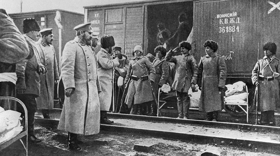 И сегодня мы хотим обратиться к другой стороне войны, негромкой и где-то будничной, где-то трагичной, а где-то радостной - к теме города-госпиталя, коим и был Новосибирск во все годы военных лихолетий. Часть I. Жертвам войны. Плакат 1-й мировой войны, 1914. Худ. С. Виноградов Наш город, находящийся далеко от очагов военных действий, всегда отличался милосердием и заботой о воинах. Так получилось, что Ново-Николаевск получил статус города почти одновременно с началом Русско-японской войны 1904-1905 годов и сразу же стал одной из её частичек. В Сибирском военном округе была создана санитарно-эвакуационная часть, через которую прошли сотни санитарных эшелонов, четверть миллиона русских солдат и офицеров. У нас в районе Сухарного завода был организован военный лазарет Красного креста на 107 мест, легкораненых размещали в домах горожан, в соседних деревнях. Отправка эшелона с ранеными во время Мукденского сражения солдатами русской армии в тыловые госпитали. Март 1905 года. (РИА «Новости») Вот, например отзыв о станции Чулым. Московский Н.: «На весьма незначительной и затерянной в просторе Барабинской степи станции Чулым, местный буфетосодержатель г. Чиндорин всем проезжавшим через эту станцию в Страстную субботу и первые два дня Св. Пасхи воинским нижним чинам нашел возможным сделать пасхальный подарок в форме яиц, сыра, булок, ветчины и т.п., вследствие чего солдатики, вероятно, унесли с собою доброе воспоминание о нашей маленькой станции…» [1]. В свидетельствах очевидцев сохранилось и описание Ново-Николаевского военно-остановочного пункта «Красные казармы», через который проходили воинские эшелоны по пути следования в Манчжурию. Сребрянский Митрофан Васильевич, священник 51-го драгунского Черниговского полка:«Вот удовольствие то. Действительно, прекрасная баня и мы вымылись отлично. Вообще, на этом пункте построено несколько огромных каменных зданий в два и три этажа каждое, в них находятся: офицерские номера, солдатское помещение, столовые, солдатские и офицерские бани, лазарет, прачечная – все это даром, для чистки и отдыха проходящих войск! Спасибо великое устроителям сказали мы, да и все, конечно, говорят то же» [2]. В 1905 году в Ново-Николаевск переводится колыванский лазарет. Под него в самом центре города арендуется дом Самуила Ильича Самсонова (сейчас на его месте площадка перед магазином «Универсам»). Городская Дума выделяет 11 400 кв. саженей земли под постройку нового здания в военном городке, и в 1913-м лазарет переводится туда, а с началом войны становится эвакуационным госпиталем. В следующую войну - с германцами (Великую или Первую мировую) в Ново-Николаевске работало уже несколько госпиталей. Из мест их расположения сохранилось два. В здании Андреевского училища (Сибирская, 54) разместили 146-й сводно-эвакуационный госпиталь, в котором проходили лечение около 400 раненых. По штатам военного времени был расширен и гарнизонный лазарет в военном городке (Воинская, 1). Он принял 148-й госпиталь. Всего за годы войны в Ново-Николаевске лечили до 3-х тысяч раненых бойцов. Более 700 из них скончались и были захоронены на специально выделенном участке. Постановление городской думы от 4 февраля 1915 года:«отвести место под братское кладбище, согласно плана городской управы, за старым закрытым кладбищем, на углу улиц Александровской и Карамзина<…> И оста