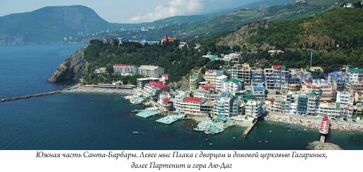 Справа все время выступает Чатыр-Даг, а после перевала слева вырисовывается красивейшая гора Крыма - Демерджи. Если бы можно было перелететь через нее на побережье, можно было бы помолиться в чудесном храме Покрова Пресвятой Богородицы и Николая, чудотворца Мир Ликийских: он построен в виде гигантской башни с маяком наверху во имя святого покровителя моряков и всех путешествующих. Но мы спускаемся к Алуште. И вдруг на подъезде к автовокзалу открываются разноцветные сверкающие главы храма, но мы торопимся в Санта Барбару, доезжаем до Кипарисного и по крутым серпантинам спускаемся прямо к нашему отелю. Замечательная поездка окончена...