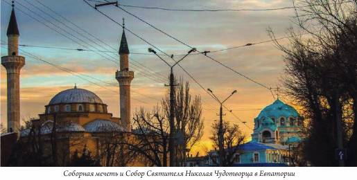 Чтобы достойно замкнуть Золотое кольцо, мы еще раз специально съездили в Алушту, где посетили этот увиденный мельком храм. Это строящийся храм во имя святых Царственных страстотерпцев. Строительство на прежде заброшенной вертолетной площадке движется к завершению, храм уже увенчан разноцветными куполами, это они так радужно сияют на фоне крымского неба, но некоторые из них еще стоят на земле. Близко от стройки также остался штабель желтого крымского камня, ракушечника, из которого сложен храм. Его нижний ярус освящен в честь чудотворца Серафима Саровского. Вход узкий, потолок в цокольном помещении низкий, но все это компенсируется замечательным внутренним убранством церкви. Строгие матушки не разрешают фотографировать. Мы подождали отца Виктора, настоятеля церкви, и попросили у него благословения сделать несколько снимков для православного журнала. Он поинтересовался, какой журнал и откуда мы, и очень любезно разрешил сделать необходимые нам снимки. А они стоили того. Отец Виктор является митрофорным протоиереем, он тесно связан с Афоном. Вывез со Святой горы несколько списков с чудотворных афонских икон, и они теперь так чудесно украшают храм. В церкви возведен замечательный иконостас, на стенах отменные иконы, в нише - выполненный в высокой иконной технике Крест с Распятием и предстоящими. Итак, мы поклонились Золотому кольцу и его прекрасным храмам. Может быть, они только здесь и концентрируются? Нет! Мы уже бывали раньше в Севастополе, с его святынями. Раньше были также и в Алуште, Судаке, Коктебеле, Феодосии (к сожалению, не удалось только посетить Керчь), эти города имеют православные и другие святыни греческого, римского, византийского времен, а также сооружения веков первоначального ортодоксального христианства и русского православия. А может быть, наших храмов меньше в северной части полуострова? Но нет! Мы съездили в Евпаторию к нашим давнишним друзьям, в этом прекрасном городе мирно соседствуют величественный православный собор и исламская мечеть. В этом же городе стоит несколько тяжеловесный, зато напоминающий нам наше православное византийское родство Ильинский храм. После его осмотра мы попрощались с друзьями, доехали до автовокзала и отправились автобусом в Алушту. Церковь в Саках по дороге к Алуште сияет на фоне голубого неба. Все многочисленные церкви севера Крыма объединены в самостоятельную епархию. Даст Бог, мы посетим их позже, возможно, к тому времени уже будет построено Кольцевое шоссе вокруг всего Крыма... Основатель крымского мессионерства архиепископ Херсонский и Таврический Иннокентий (Борисов) еще в XIX веке сказал: «Крым как будто создан для того, чтобы быть нашим русским Афоном». Сколько раз мы уже убеждались в том, что Крым прекрасен и географически, населен дружелюбным народом разных национальностей и конфессий. Он является чудесной землей, из которой произросло столь же чудесное древо русского православия! Живоносный Источник №1 (12) 2017 год