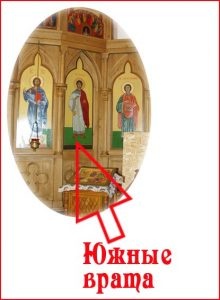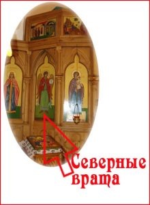 Северные и южные врата иконастаса. Фото: www.nesterov-cerkov.ru Иногда иконостас может представлять только поставку с иконой. Первые девять веков никогда не перекрывала святую святых в православном храме, но была только низкая деревянная перегородка с иконками. „Поднятие” подставки для изображения началось после 10-го века, и в течение веков приобрела свой нынешний вид. Вот как толкует смысл иконостаса и его предназначение средневековый греческий церковный архиерей, известный православный литургист и учитель Церкви Св. Симеон Солунский: „С антропологической точки зрения алтарь символизирует душу, наос – тело, а иконостас, в действительности, отделяет две части храма и делает одну видимую и другую часть невидимой для человеческого глаза.