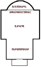 Внутренняя структура церкви Каждый храм делится на три части: притвор, среднию часть и алтарь. Притвор храма. Фото: www.prihod.org.ua Притвор:Первая часть храма называется внутренним притвором. В древности, в первой части церкви стояли оглашенные, то есть те люди, которые готовились принять Св. Крещение и те христиане, которые совершили большие грехи, были отлучены от молитвенного участия и принятии Св. Причастия. Стены притвора покрыты церковными фресками и иконами.