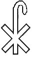Граф А. С. Уваров, описывая находки катакомбного периода, сообщил о том, что: "глиняная лампа, найденная в римских пещерах, показывает нам весьма ясно, каким образом рисовали загнутый посох вместо всего символа пастыря. На нижней части этой лампы посох изображен пересекающим букву X, первую букву имени Христа, что в совокупности образует монограмму Спасителя" (Христ. симв. стр. 184).