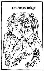 Внешне оно выглядело так. На восьмой день после того, как апостолы возвратились из окрестных селений со своей первой проповеди, Иисус взошел с тремя из них - Петром, Иаковом и Иоанном - на высокую гору недалеко от Назарета, и там они вдруг увидели Его в поразившем их облике: в блистающих как снег одеждах и с лицом, озаренным неземным светом. Как бы притянутые Его святостью, к нему приблизились древние пророки Моисей и Илия, а из облака раздался возглас: "Это Сын Мой возлюбленный, на Котором Мое благоволение; Его слушайте". Ученики были здорово перепуганы и не знали, как себя вести, и что говорить, но через минуту все кончилось, и перед ними вновь стоял один Иисус в Своем обычном виде.