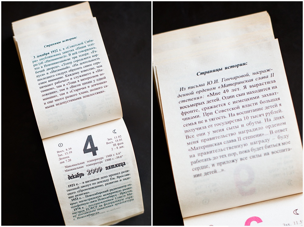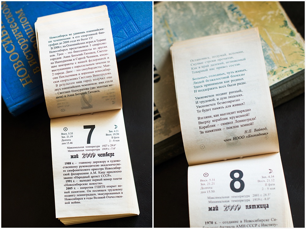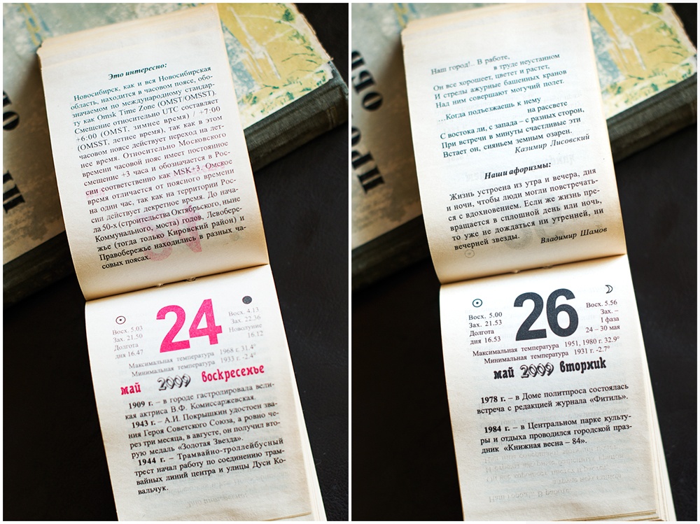 Первый новосибирский численник"Первый новосибирский численник", однако, не совсем книга, а отрывной календарь, но отрывать от него страницы ни у кого не поднялась бы и рука, потому что по количеству информации и интересных фактов он даст фору многим более солидным изданиям.