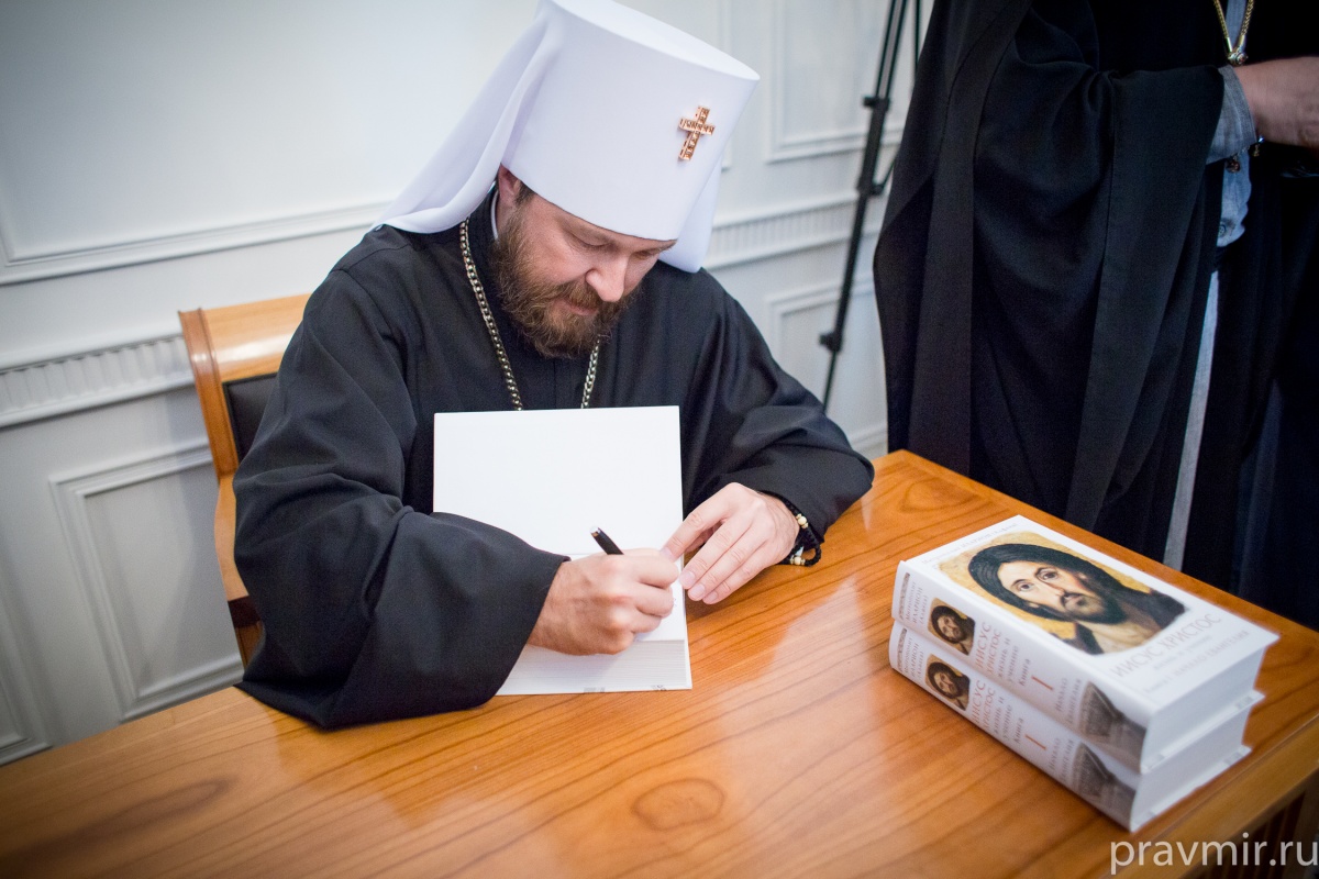 Завершилась презентация автограф-сессией. Митрополит Иларион рассказал журналистам, что тираж первого тома составляет 10 тысяч экземпляров, следующие тома уже написаны, и могут быть изданы в течении года.