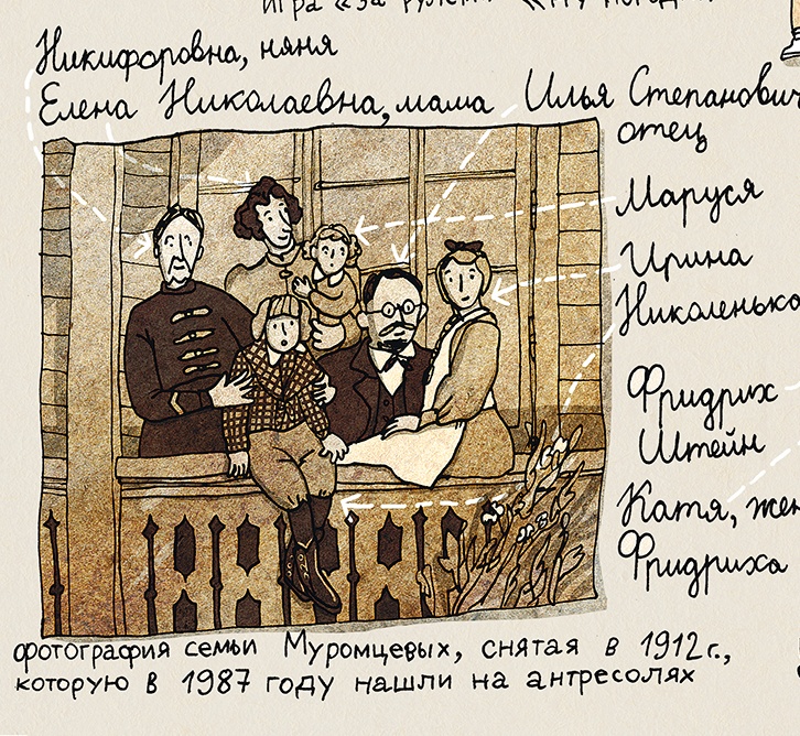 Александра Литвина: Это всегда индивидуально. Есть дети, которые хотят довольно взрослые книги читать и обсуждать, а есть дети, которые не очень к этому готовы. Если ребенок интересуется семейной историей, эта книга может быть поводом к разговору. Мы хотим, чтобы она была именно поводом для семейного разговора и разглядывания.