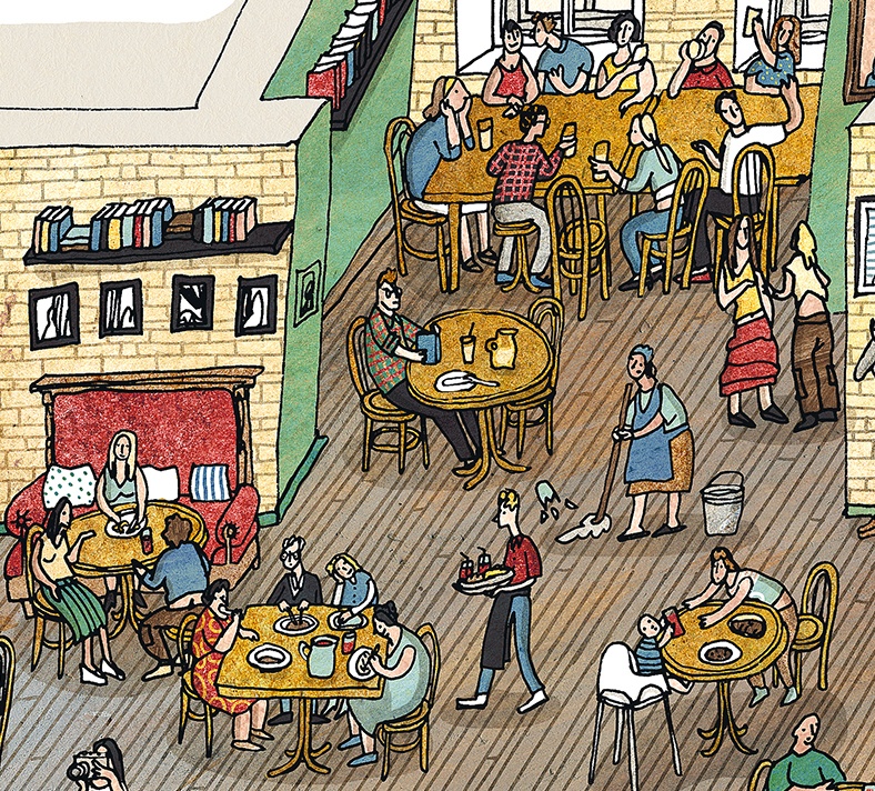Александра Литвина: Я еще не протестировала на детях, но у меня есть своя целевая аудитория, которой я обязательно покажу. Я уверена, что его история про людей не очень заинтересует, ему сейчас шесть. Но точно заинтересуют приборы и разные домашние механизмы, которые у нас там показаны. Мне кажется, совершенно нормально, когда разных людей в книге интересуют совершенно разные вещи, и каждый ребенок, и каждый взрослый видит в книге что-то свое. Кому-то интересно посмотреть, только какой был телефон, какой был катушечный магнитофон.