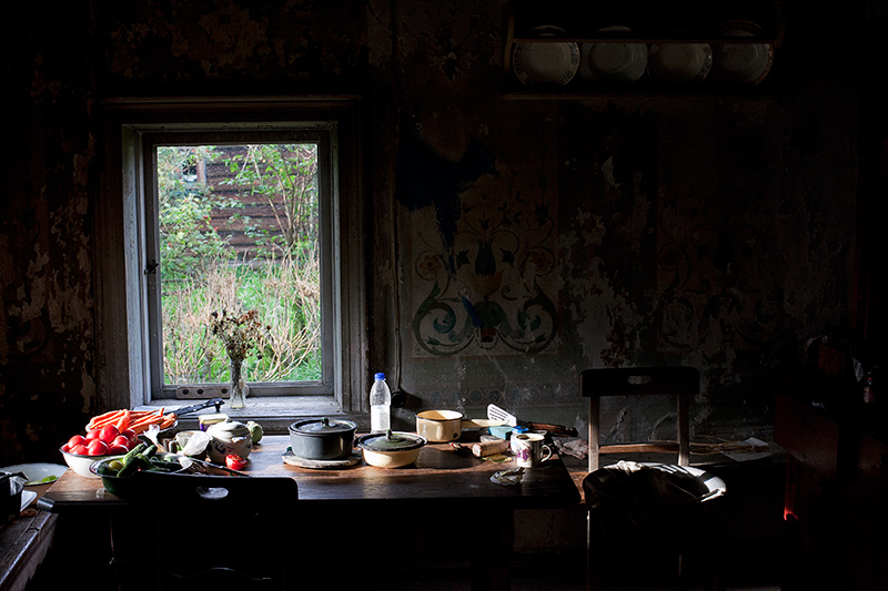Кухня - на заднем плане через окно виден сруб Лукича.