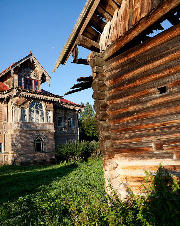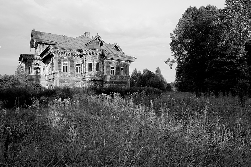 Погорелово - забытая и заброшенная деревня в Костромской области. Когда то это было государственное (и потому богатое) село. Местные крестьяне в основном промышляли отходничеством, то есть ездили на заработки в Питер. Некоторые зарабатывали прилично и крепко становились на ноги. В одной из таких семей родился Иван Дмитриевич Поляшов, "Поляш" в местном фольклоре. Поляшов взлетел выше всех остальных Костромских отходников - венцом его карьеры был субподряд на ремонтных работах в Зимнем Дворце. Получив статус потомственного почетного гражданина, вдовец Поляшов вернулся в родную деревню, женился и в 1903ем году построил дом-терем (а кроме того стал одним из крупнейших землевладельцев Чухломского уезда, построил современную мельницу на Виге, часовню в Погорелово, новый придел в приходской церкви в Дорке итд).