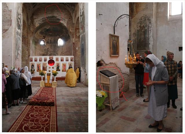 Чудо есть!!! Неравнодушными людьми в храм была возвращена одна престольная икона Георгия Победоносца, а также нам кажется, что проявилась фреска над алтарем!