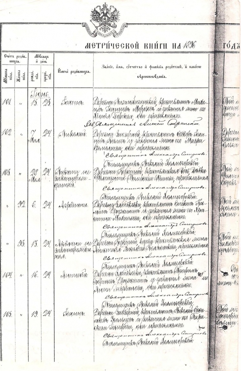 Фрагмент метрической книги Троицкой церкви села Чумашки 1896 г.