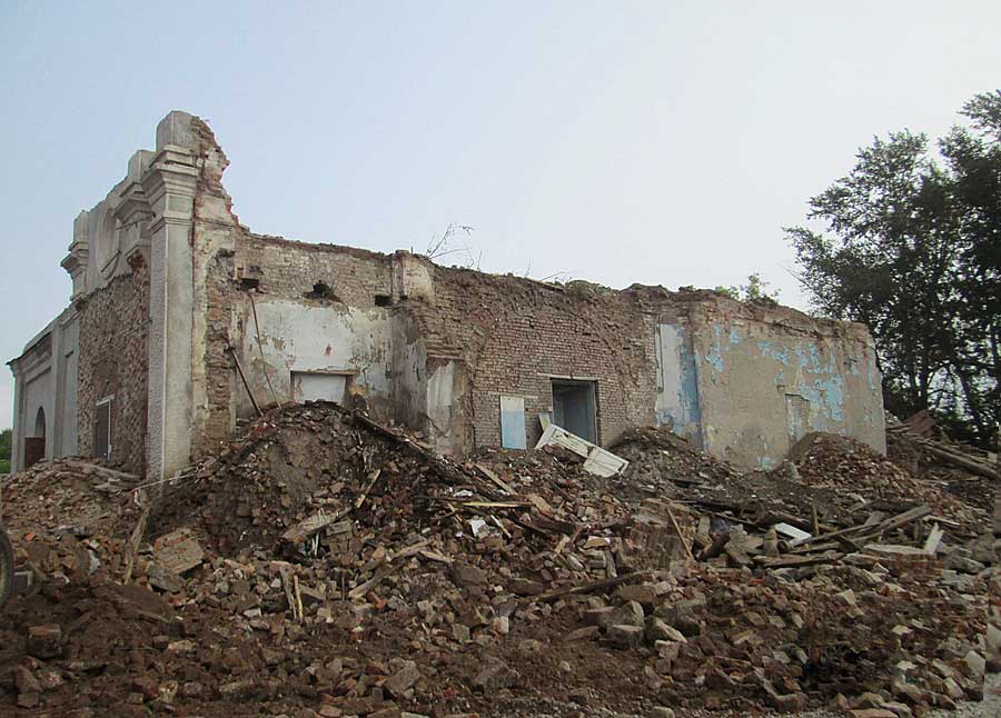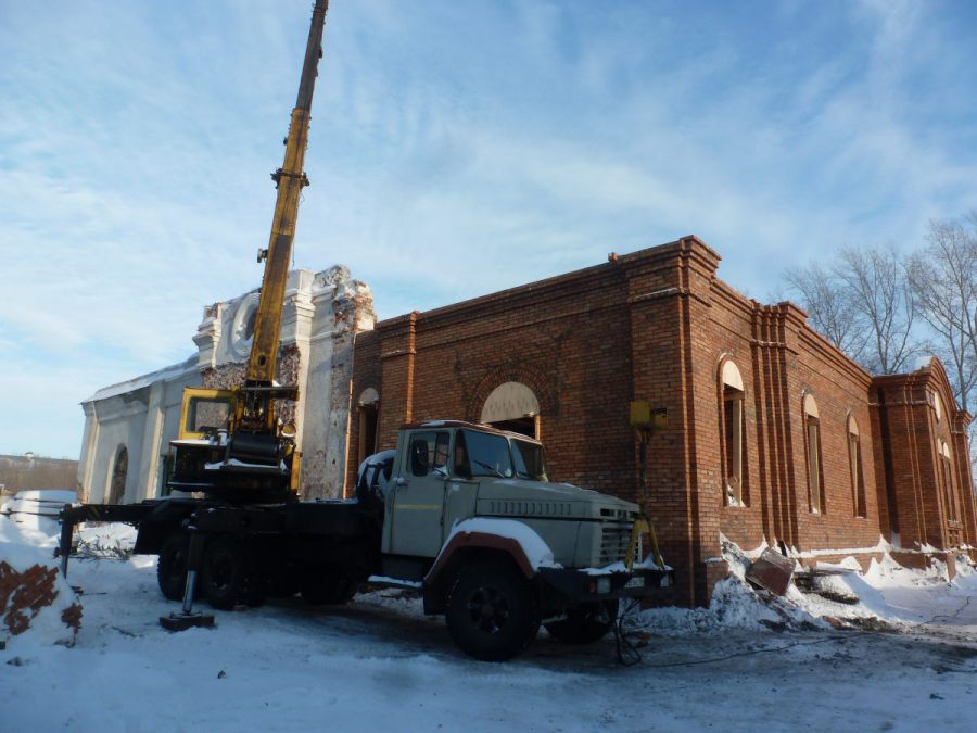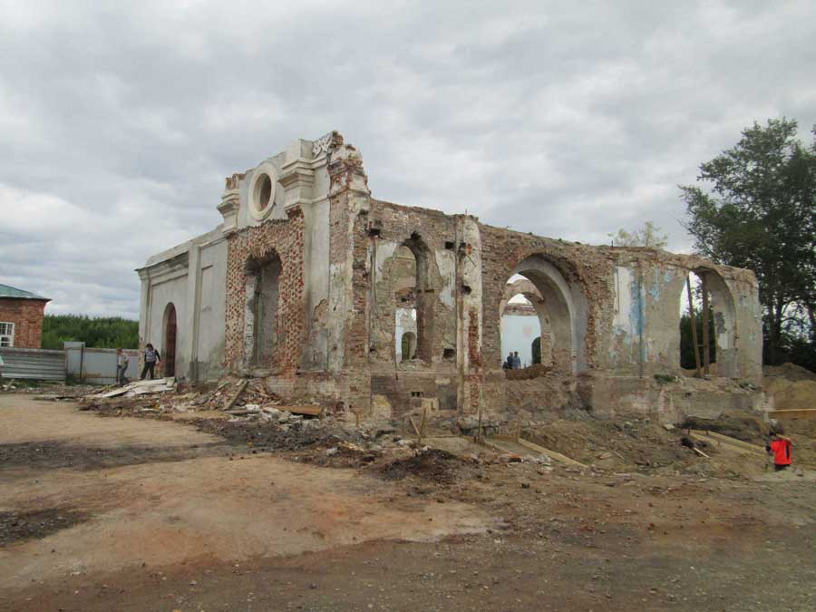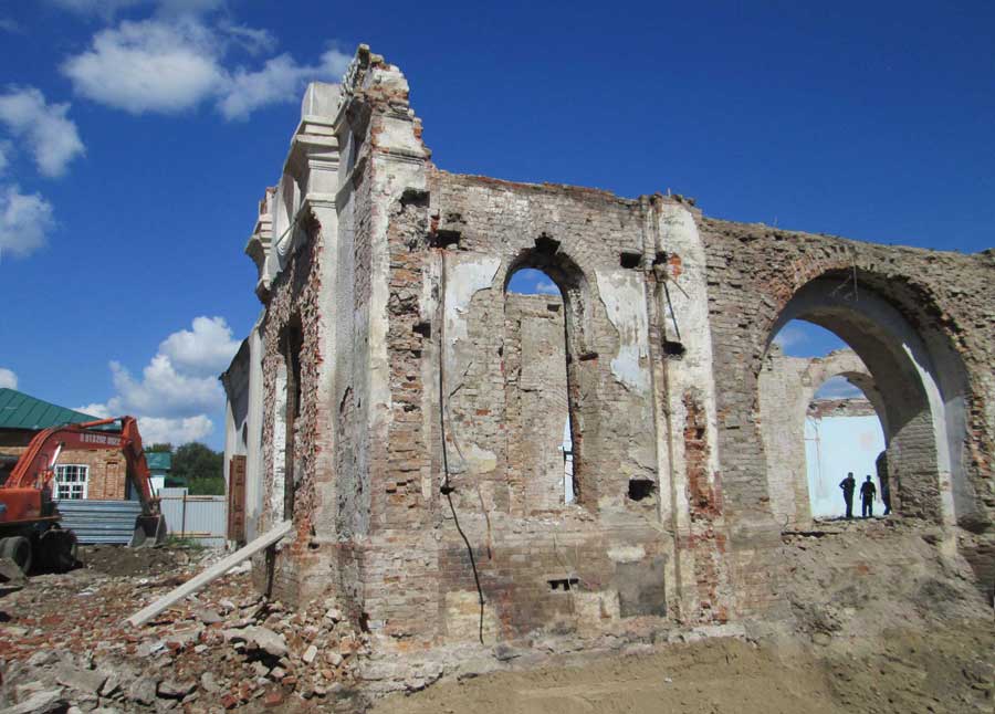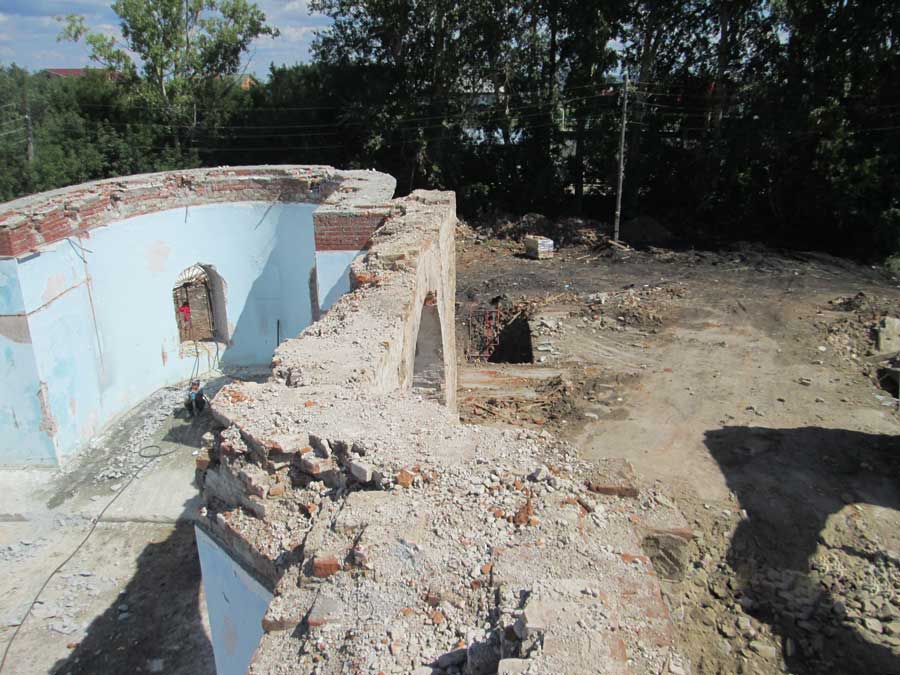 Состояние здания в 2016 году. Начало демонтажных работ. Демонтирован второй этаж, кровля и остатки стен южного придела.
