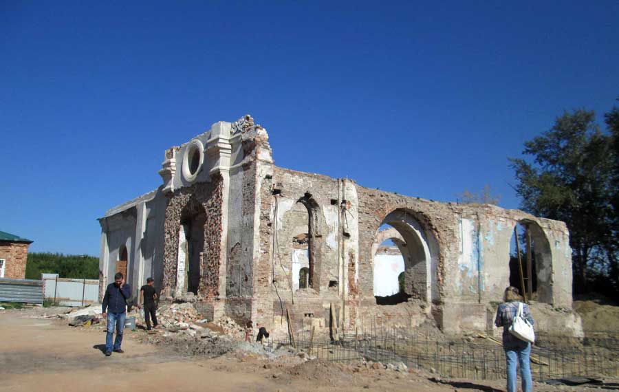ВОЗРОЖДЕНИЕ. Хроника реставрации и восстановления объекта культурного наследия «Собор Святой Живоначальной Троицы» р.п. Колывань.Памятник архитектуры регионального значения расположен по адресу Новосибирская область, Колыванский район, р.п. Колывань, ул. Советская, 34. Поставлен на государственную охрану в 2015 году. В поселке Колывань на улице Советской в глубине квартала находилось неказистое здание, внешне похожее на клуб. Долгое время было неизвестно ни происхождение, ни истинное назначение этого сооружения. А теперь многие колыванцы знают, что это – бывший православный храм. В 1859 году по ходатайству епископа Томского Парфения перед Святейшим Синодом была разрешена к построению в Колывани церковь «с наименованием Соборною». Собор был заложен 15 августа 1861 года, построен «тщанием прихожан» и освящен 1 октября 1867 года. «Зданием собор каменный, с таковой же в одной связи с колокольнею, покрыт железом, сложен очень прочно». Собор во имя Святой Живоначальной Троицы стал первым каменным зданием, построенным в «новой» Колывани. Первоначально храм располагался «в чистом поле» вблизи трассы Московско-Сибирского тракта и в некотором отдалении от основного массива жилой застройки, тяготевшей на юге к деревне Мельниковой. Позднее, в соответствии с планом К. Турского, в городе была сформирована огромная Соборная площадь от улицы Московской с севера до Купеческой (Советской) с юга, и от Покровской (Революционного проспекта) с запада до Жернаковской (Карла Маркса) с востока. Во второй половине XIX века она уже была окружена домами наиболее богатых жителей Колывани – купцов Орлова, Пастухова, Кроткова, Кривцова, Жернакова, Култашева, Паисова. Здесь же размещались базар, церковно-приходская школа, Городская Дума и Управа. В период 1871 - 1872 гг., из-за возникшей необходимости расширить объем храма и сделать его теплым в зимнее время, рассматривается прошение епископа, в котором сказано: «Устроенный в городе Колывани каменный храм во имя Святыя Троицы оказывается в настоящее время для помещения народа тесным, и в зимнее время холодным; по сему тамошний 2ой гильдии купец Кирилл Климов Кривцов, имея желание устроить к тому храму с северной стороны каменный придел во имя Святой Великомученицы Екатерины на собственные средства, просит разрешить ему устройство сего придела....» В 1876 г. были освящены два придела: северный «Во имя Святой Великомученицы Екатерины» (1 октября 1876 г.) и южный «Во имя Святых преподобного Кирилла и мученицы Натальи» (29 октября 1876 г.). Храм в таком виде простоял около 60-и лет. По свидетельствам старожилов внутреннее убранство Собора было несравненно богаче, чем в другой каменной колыванской церкви, освященной во имя Александра Невского. Время создания, стилистика, характер декора Собора Святой Живоначальной Троицы позволяют предположить связь архитектуры здания с творчеством известного архитектора Константина Андреевича Тона. В 1838 году зодчий издал альбом проектов чертежей, в который вошли планы, фасады и разрезы храмов, построенных им в столице и городах центральной России, а также типовые проекты для городских каменных церквей на 1000, 500 и 200 человек. Они рекомендовались для использования при возведении культовых сооружений на территории всей страны. В работе над проектом колыванского Собора принимали участие Альфред 