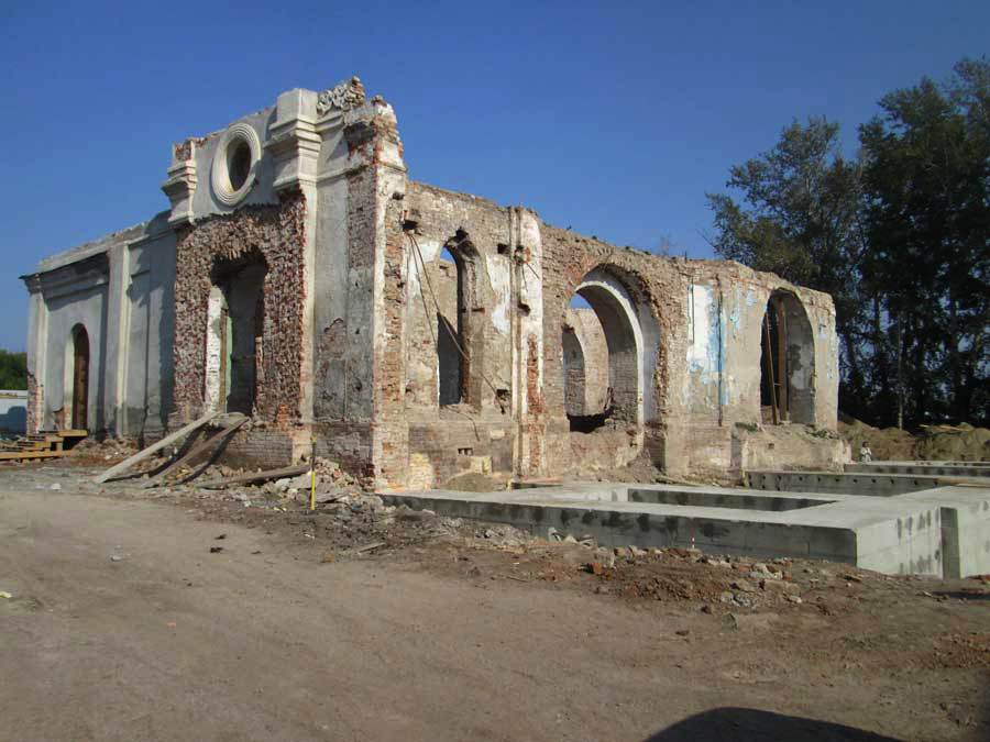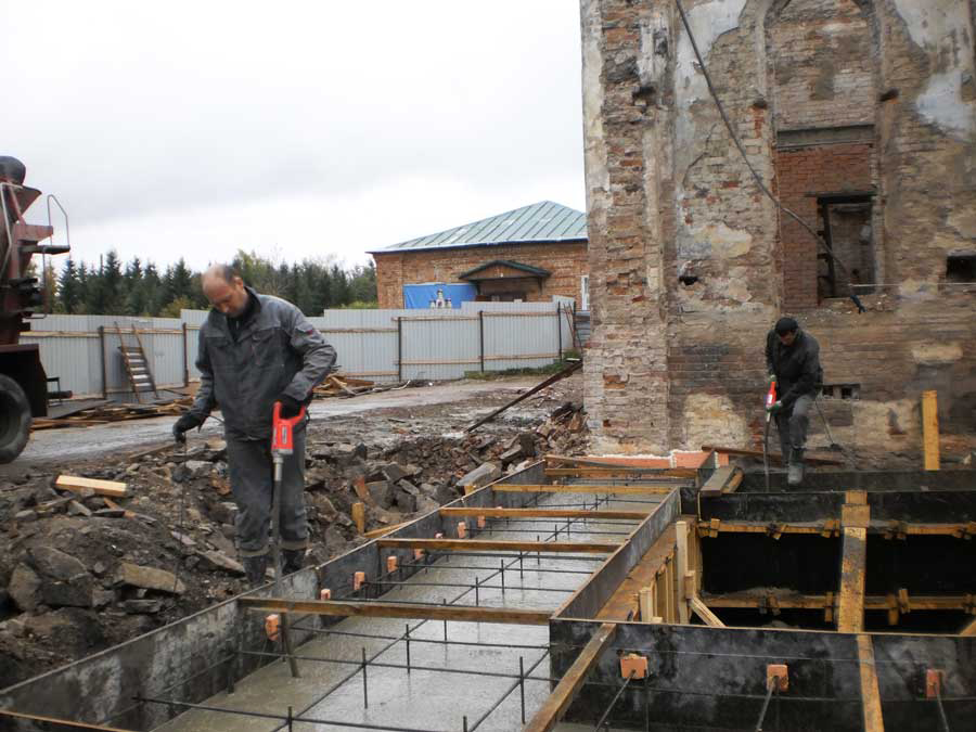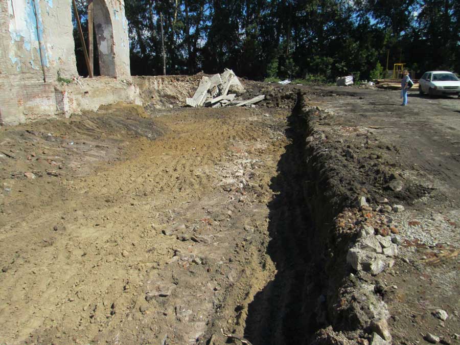 Демонтирован старый фундамент южного придела и вывезен строительный мусор.