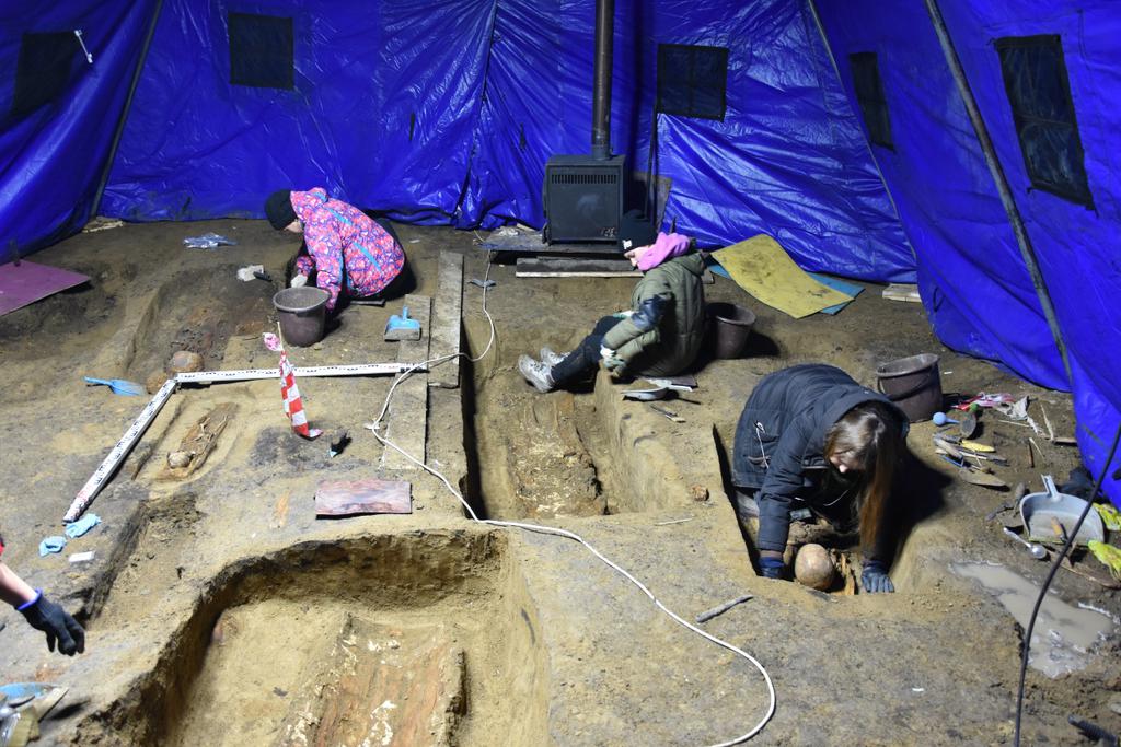 Раскопки Спасского собора в г.Куйбышеве. Октябрь 2019 года. Волонтеры. Фото