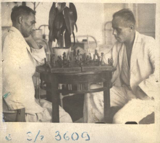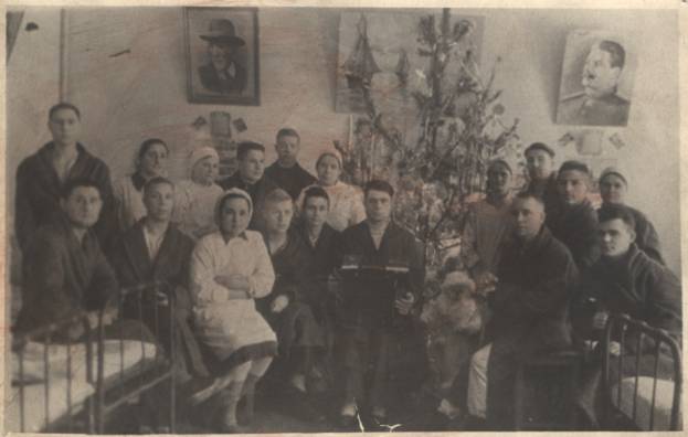 Двое раненых играют в шахматы в палате эвакогоспиталя № 3609 (Музей школы № 76) Театральные коллективы, артисты регулярно устраивали для раненых выступления и концерты. Южина В.: "В одном из госпиталей заслуженная артистка Рашевская и артистка Певцова (Ленинградский академический театр драмы имени Пушкина - К. Г.) организовали драматический кружок из выздоравливающих бойцов и командиров… Были поставлены две небольшие пьесы: "Связисты" и "Бедный Федя". Первое выступление "своих" артистов имело очень большой успех. На вечере присутствовало более 700 человек. Некоторые больные настояли, чтобы их принесли в зал на носилках". Герд Зиновий Ефимович: "Во время войны я лежал в госпитале в Новосибирске, к нам приезжали разные фронтовые бригады, в том числе и труппа театра Сергея Образцова. В палатах ставили ширму, за которой располагались артисты, их не было видно. Я подумал: с моей ногой - то, что нужно!"